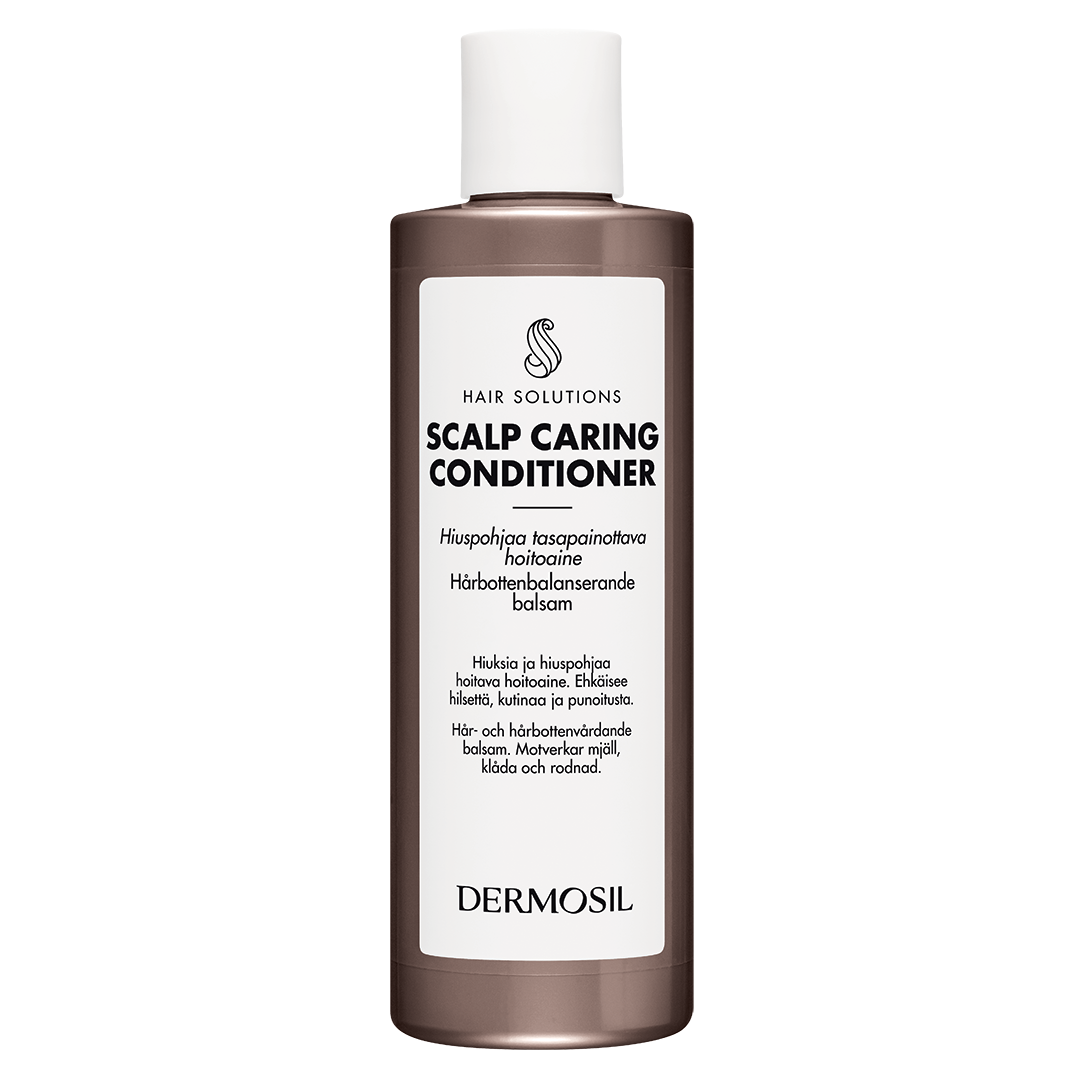 Ett hårbalsam som vårdar både hår och hårbotten. Vi glömmer lätt att också hårbotten kan törsta efter fukt och vård. Dermosil Hårbottenbalanserande balsam ger lindring åt kliande, fjällande och irriterad hårbotten.