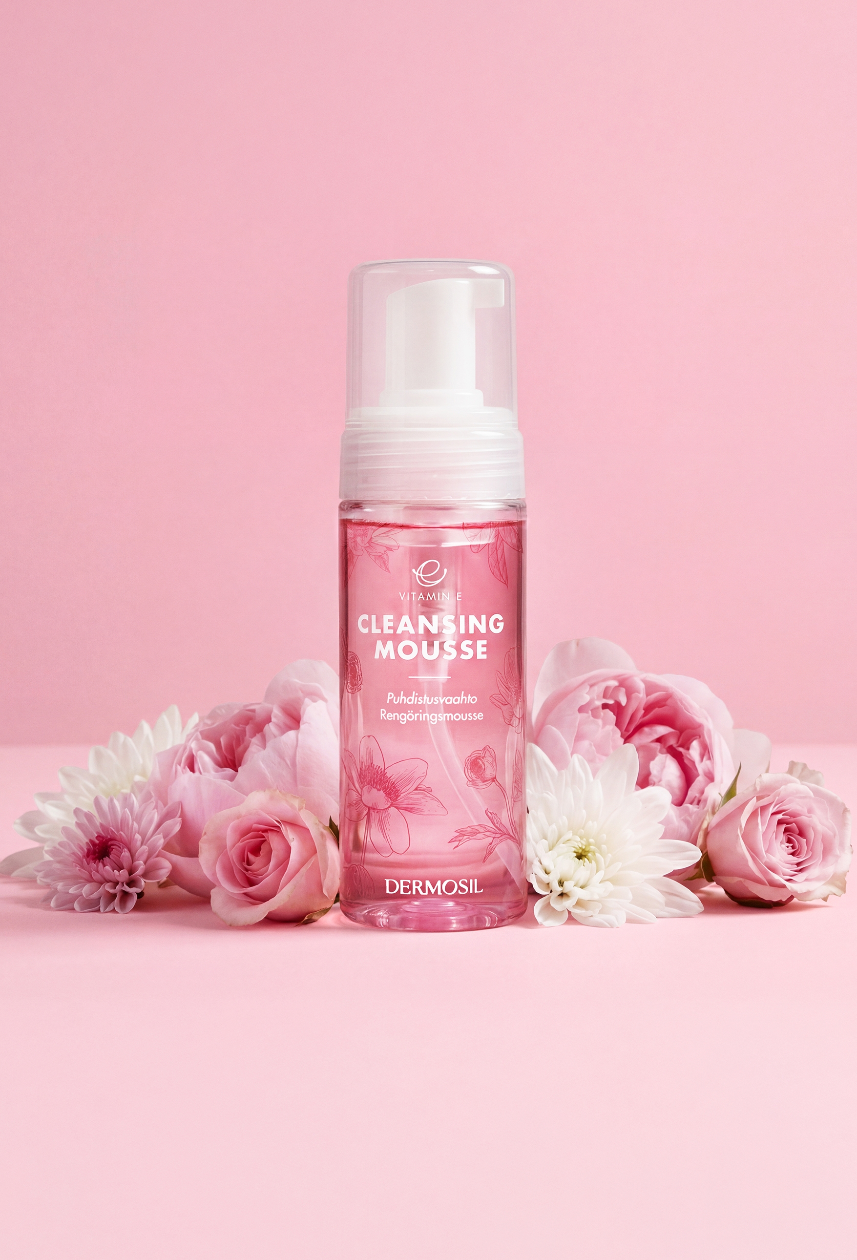 Vitamin E Rengöringsmousse är perfekt för rengöring av ansiktet. Det milda skummet rengör huden i ansiktet varsamt och avlägsnar samtidigt vattenlöslig makeup. Den genomskinligt rosa vätskan förvandlas till ett mjukt vitt skum när den pumpas ut ur flaskan. Använd denna och vi garanterar att du känner dig ren och fräsch!