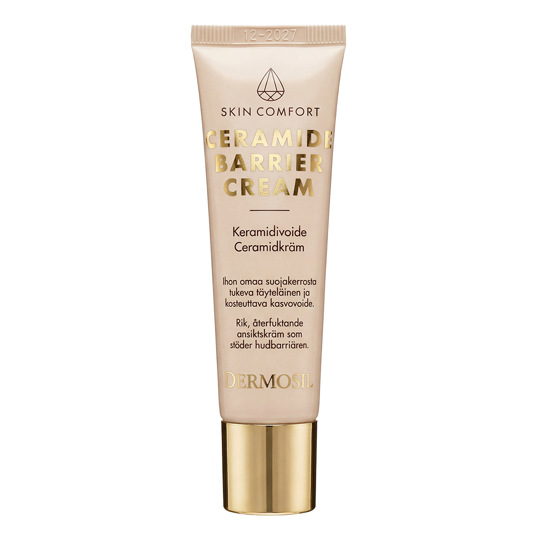När huden åldras försvagas dess naturliga ceramidproduktion, speciellt vintertid. Ceramider är hudens naturliga byggstenar, vars uppgift är att skydda huden från att torka ut och hjälpa huden att upprätthålla sin fuktbalans. Dessutom ser ceramider till att hålla hudens skyddsbarriär stark, genom att skydda hudens yta mot yttre påfrestningar och skador. En stark skyddsbarriär i huden hjälper till att bevara fukt, vilket gör huden mjuk och spänstig.