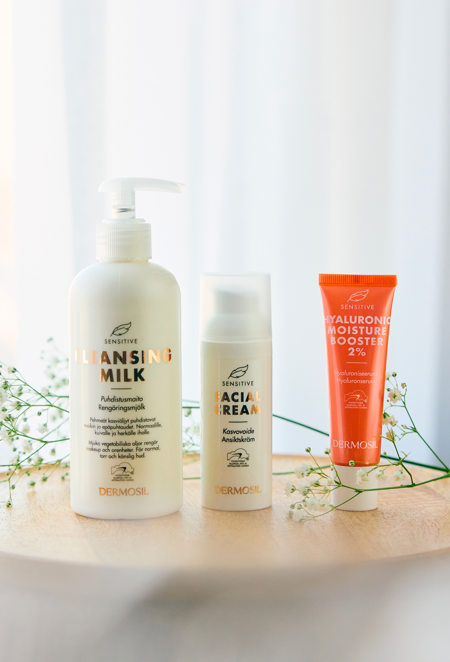Sensitive Rengöringsmjölk innehåller högklassiga mjuka växtoljor, som avlägsnar både makeup och orenheter från huden. Rengöringsmjölken har en fräsch gelaktig konsistens och är vit till färgen. Den innehåller inga fetter som täpper till porerna och är en bra rengöringsmjölk för torr, känslig och atopisk hud.