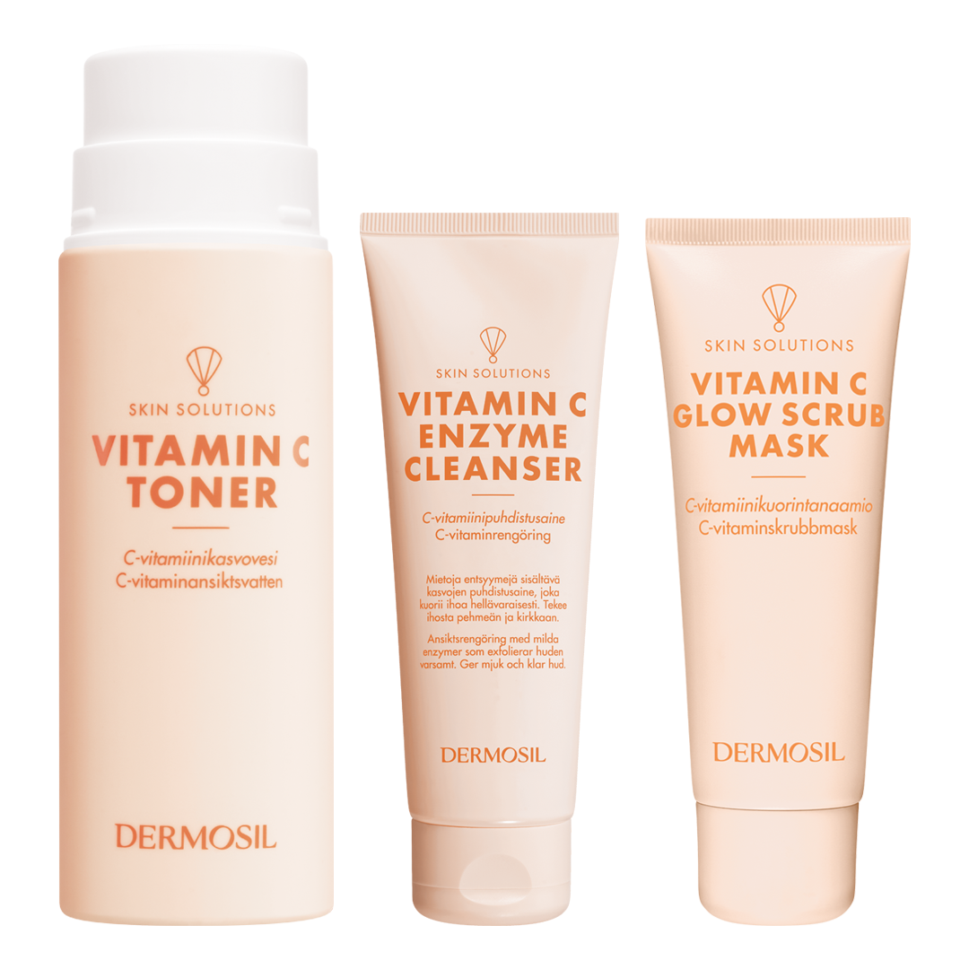 Vill du ha en slät, mjuk och strålande hud? Detta set med C-vitamin erbjuder en komplett rengöringsrutin som effektivt rengör, exfolierar och återfuktar huden. Rengöringssetet Lyster för huden innehåller C-vitaminskrubbmask, C-vitaminrengöring och C-vitaminansiktsvatten som tillsammans ger huden en jämn yta och naturlig lyster.