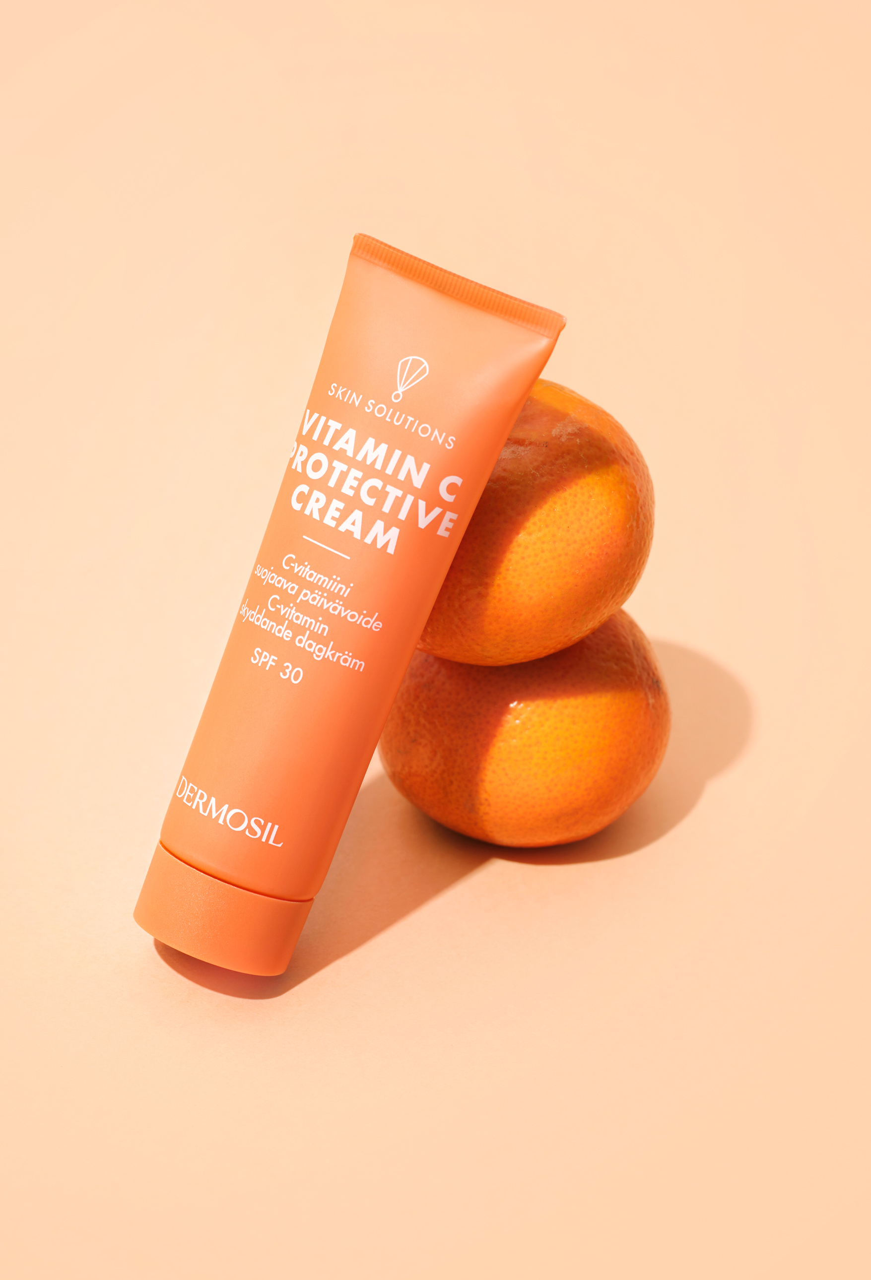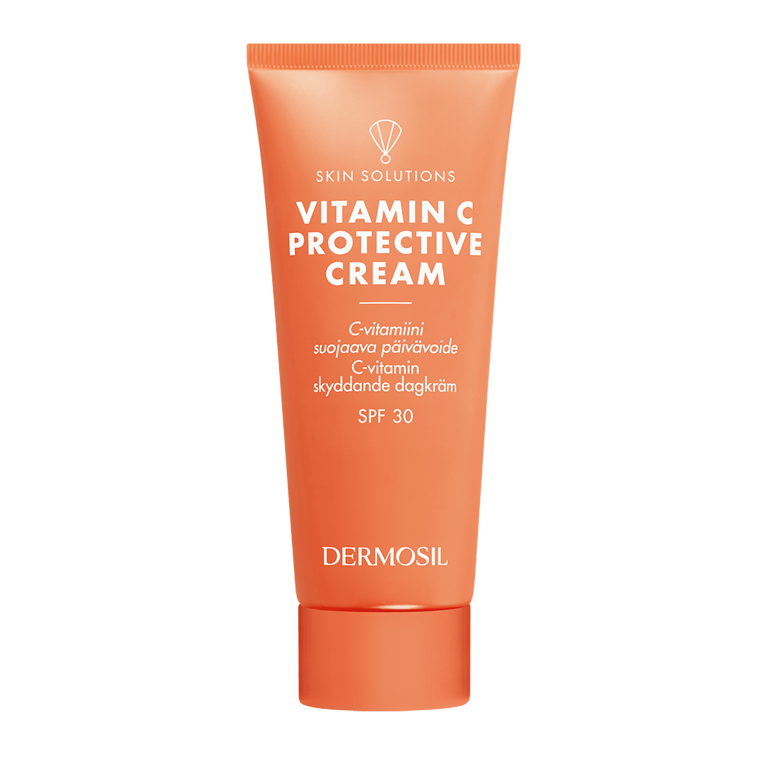 Genom att använda kräm med solskyddsfaktor skyddar du huden mot pigmentfläckar och ålderstecken orsakade av solen. Väljer du en dagkräm med C-vitamin som aktivt ämne, jobbar krämen också för att förbättra hudtonen och hudens spänst samt stimulera kollagenproduktionen.