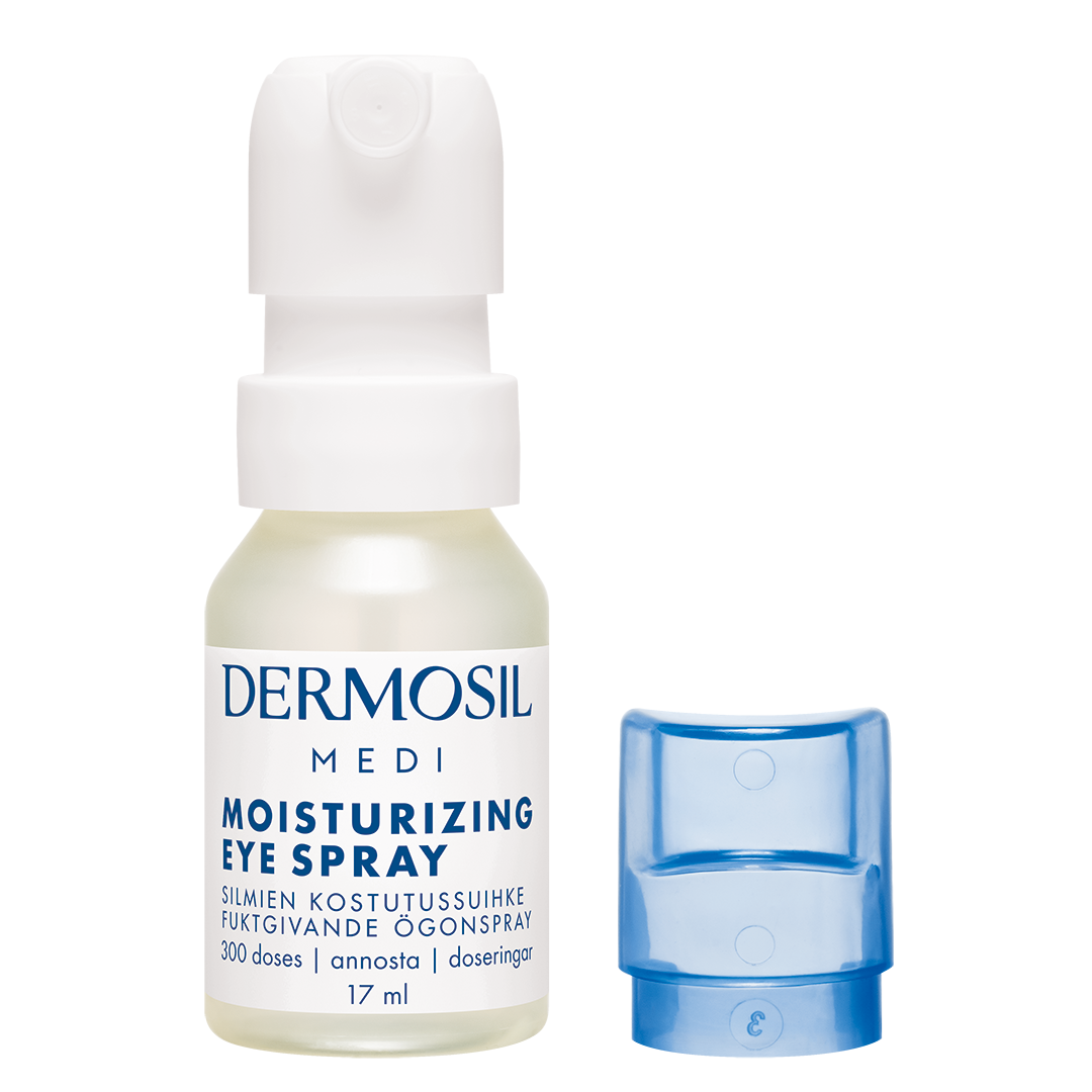 Fuktgivande ögonspray är utvecklad, tillverkad och kliniskt undersökt i Finland, en steril, CE-märkt medicinteknisk produkt.