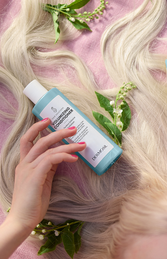 Applicera i handdukstorkat hår, låt verka i 3–5 minuter och skölj. Ett balsam som ger volym.
