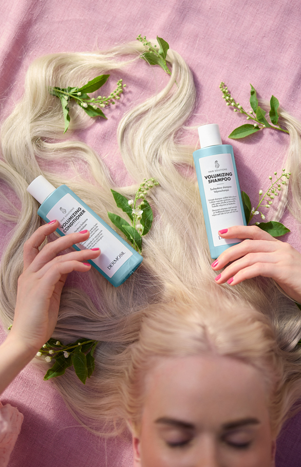 Både volymschampo och balsam innehåller extrakt från lindblommans knoppar, som ger volym och fukt till tunt och fint hår. Dessutom innehåller dessa volym-hårprodukter återfuktande glycerin och betain från finländska sockerbetor, som återfuktar, skyddar och ger håret glans och mjukhet.