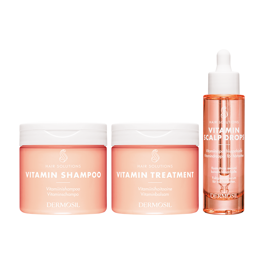 Vitaminbalsam är en fyllig och snabb intensivkur för håret. Torrt och skört hår, som lätt går av, får effektiv lindring av från Vitaminbalsam som är fullspäckad med näringsgivande och fuktgivande ingredienser. Vitaminbalsam innehåller pantenol som gör håret glänsande, starkt och silkesmjukt. Sheasmör vårdar och återfuktar håret och hårbottnen. Ricinolja återfuktar och förhindrar fukten från att försvinna ur håret. Produkten innehåller också finländsk betain som återfuktar håret och ser till att bibehålla dess fuktbalans. Produkten kan användas antingen som balsam eller hårinpackning.