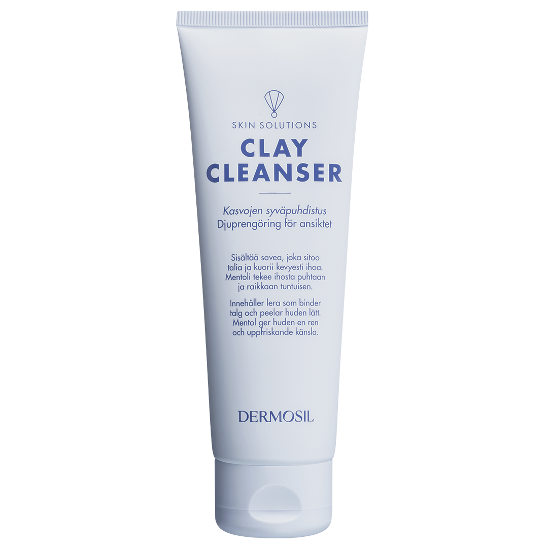 Oren hy och hy som lätt blir fet behöver en effektiv rengöringsprodukt som matchar de höga krav som hudtypen ställer. Dermosil Djuprengöring för ansiktet innehåller lera, som absorberar talg och orenheter samtidigt som hyn får en lätt peeling.