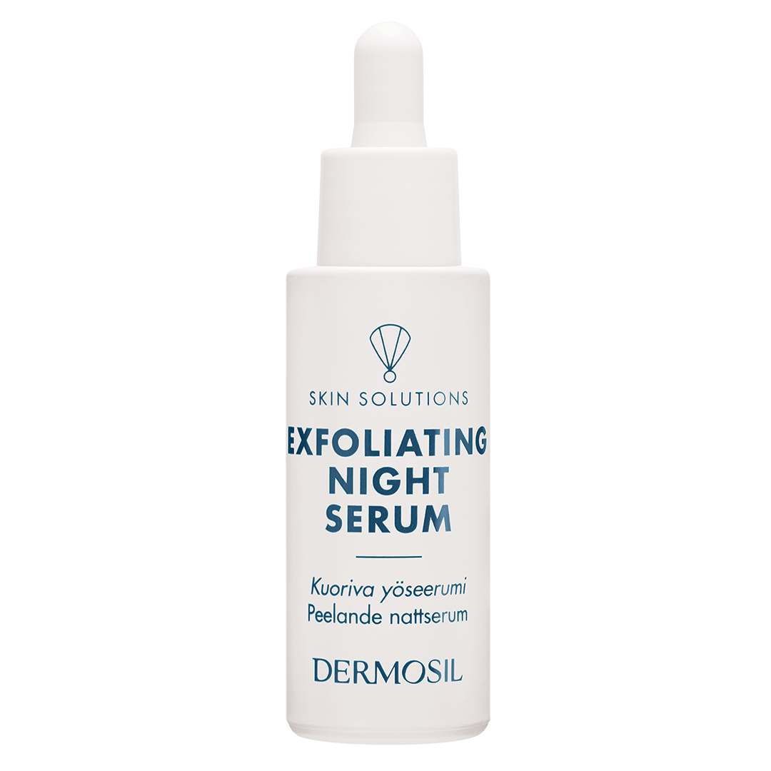 Peelande nattserum är en kemisk peelingprodukt, som verkar under natten. Döda hudceller peelas bort och fuktbalansen förbättras. Växtbaserade socker, xylitol, hjälper huden binda fukten och stöder hudens egen produktion av keramider och hyaluronsyra. Peelande nattserum passar för trött och ansträngd hud och för hud med ålderstecken.
