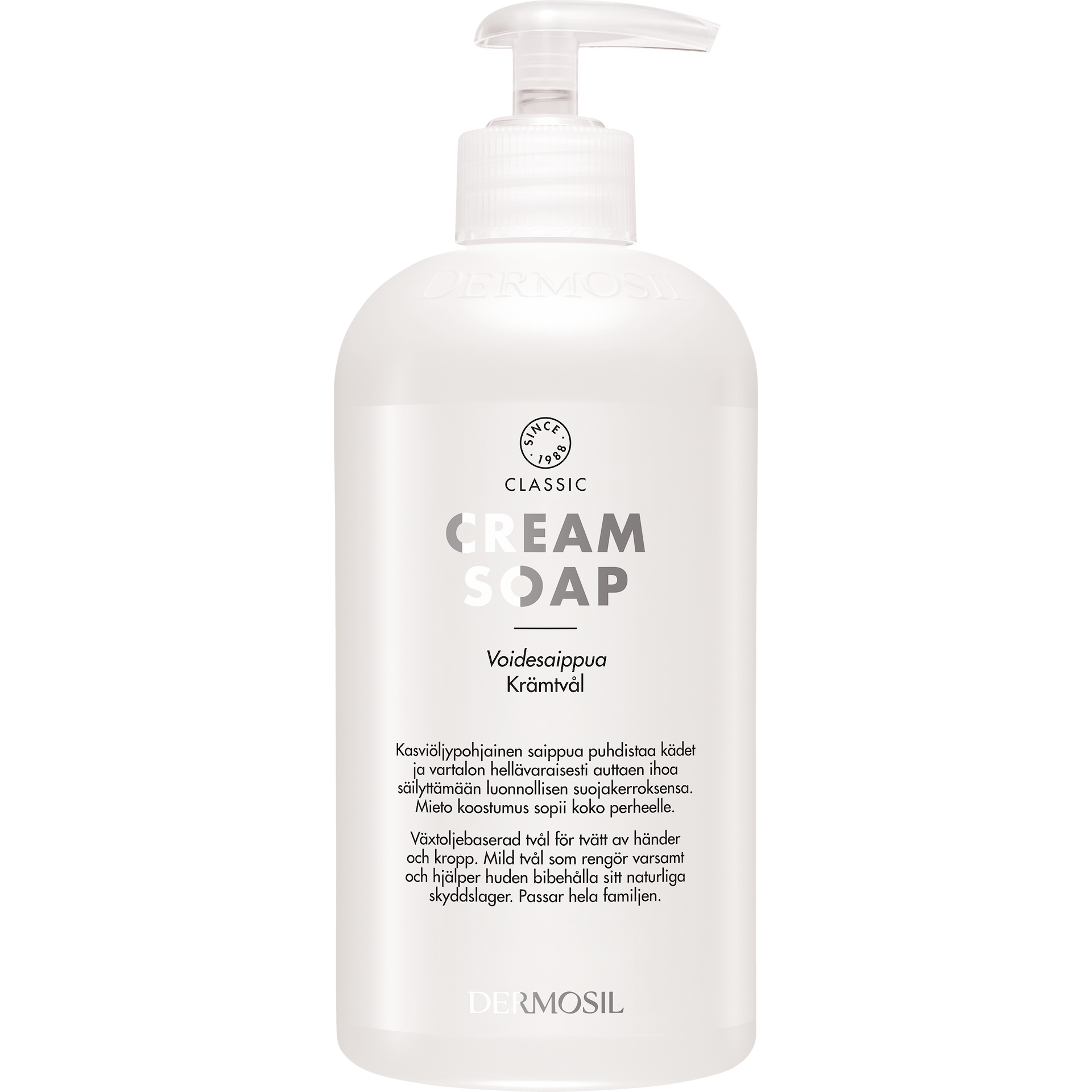 Krämtvålen är mild med en krämig konsistens. Den är tillverkad av högklassiga vegetabiliska oljor. Används för handtvätt eller som duschtvål för hela kroppen. Tvålen är dryg och passar för hela familjen.