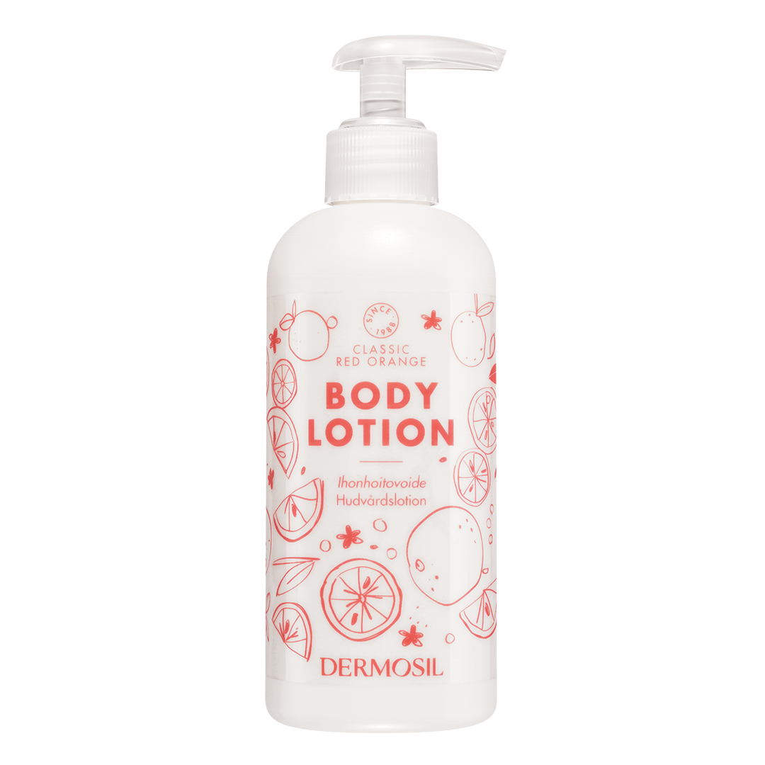 Röd apelsin Hudvårdslotion har en underbart fräsch citrusdoft. Doften är en av våra mest populära dofter genom tiderna och bekant sedan tidigare från bland annat Röd apelsin Duschgel. Till samma produktfamilj i Classic-serien hör också Röd apelsin Deo Roll-On och Röd apelsin Kroppspeeling.