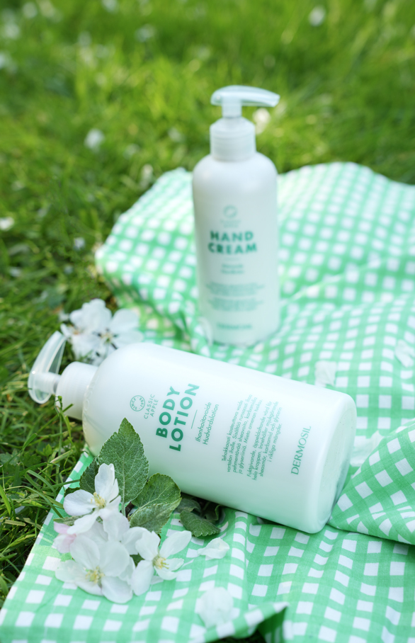 Apple Kroppskräm är en fräsch, fuktgivande och vårdande kroppskräm för hela familjen. Kroppskrämen absorberas snabbt och gör att huden känns mjuk och återfuktad. Den friska doften består av grönt äpple toppat med stänk av päron och persika. Kroppskrämen kommer i en dryg pumpflaska på 500 ml.