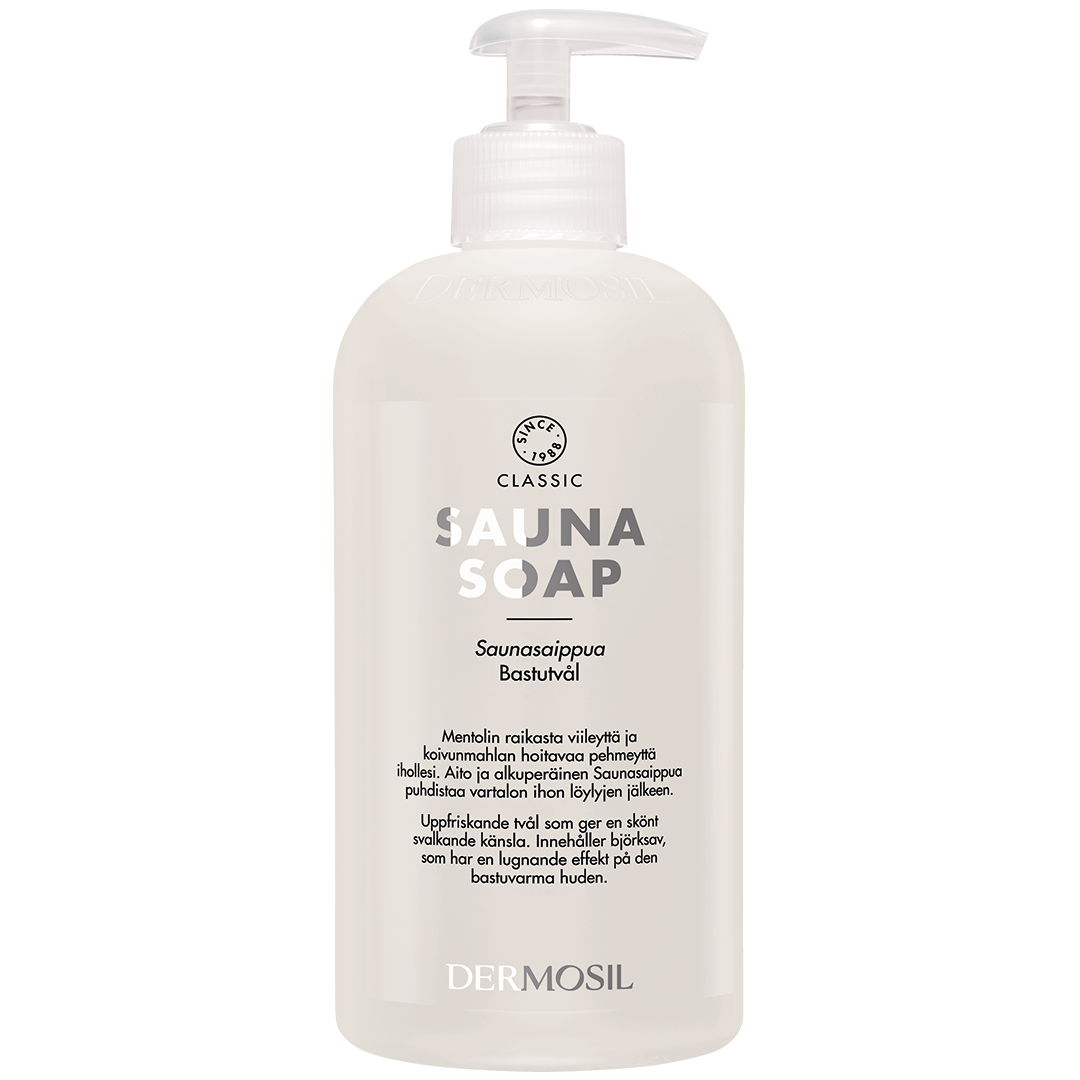 Flytande tvål som är både fräsch och vårdande, avsedd att användas i samband med bastun. Innehåller svalkande mentol och björksav.