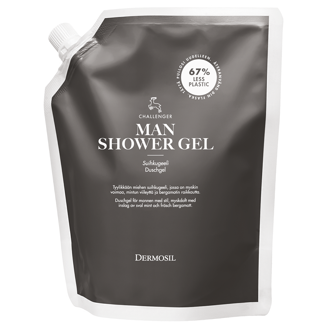 Dermosil Challenger Duschgel är en fräsch rengöringsprodukt för män. Duschgelen innehåller milda rengörande tensider och återfuktande glycerin och passar därför utmärkt för dagligt bruk. Duschgelen passar för rengöring för hela kroppen.