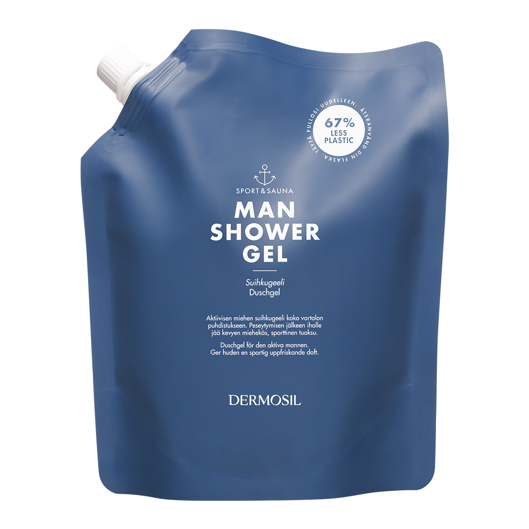 Sport & Sauna Duschgel refill har samma dryga mängd på 500 ml som flaskan. Med en refill fyller du smidigt en tom flaska.