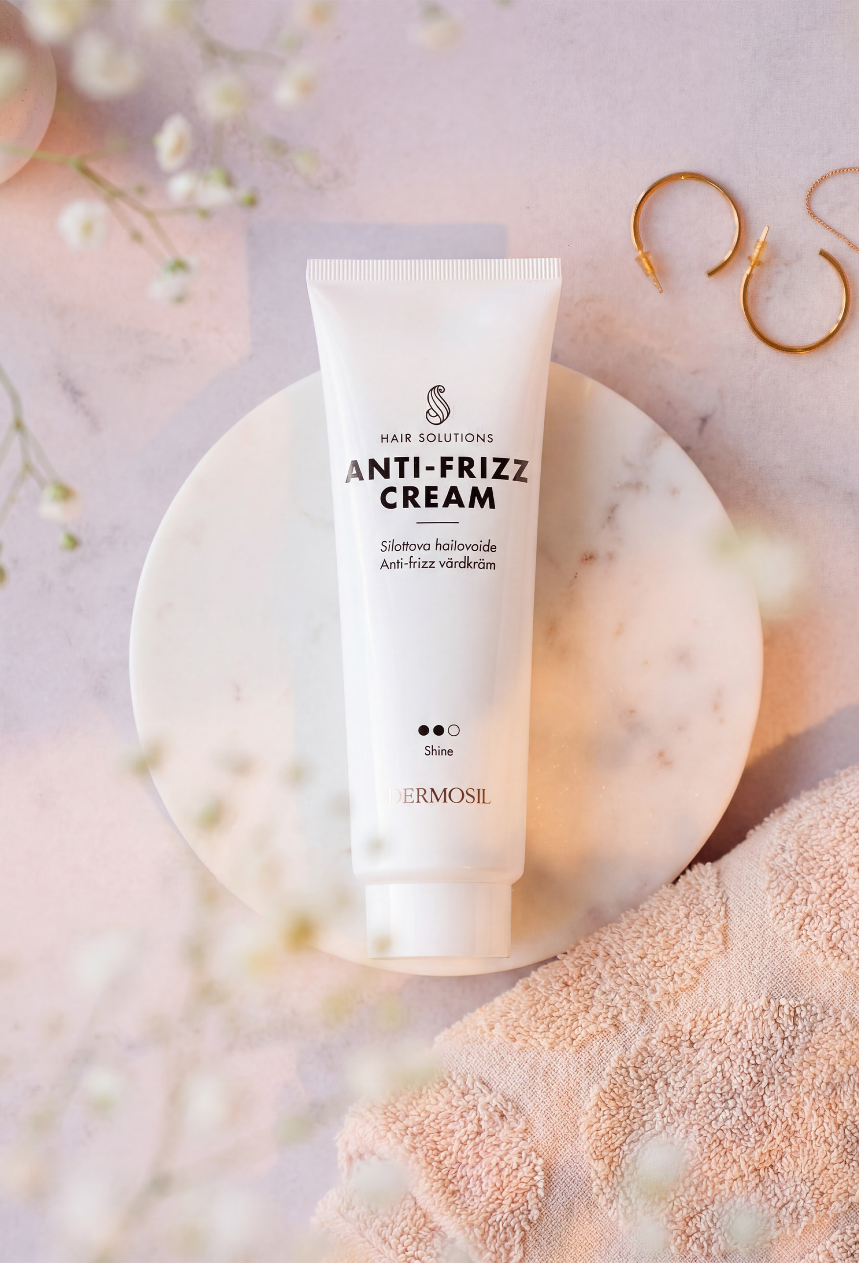 - Förbered håret: Börja med att borsta håret noggrant. Applicera en liten mängd Anti-frizz vårdkräm jämnt i hela håret.