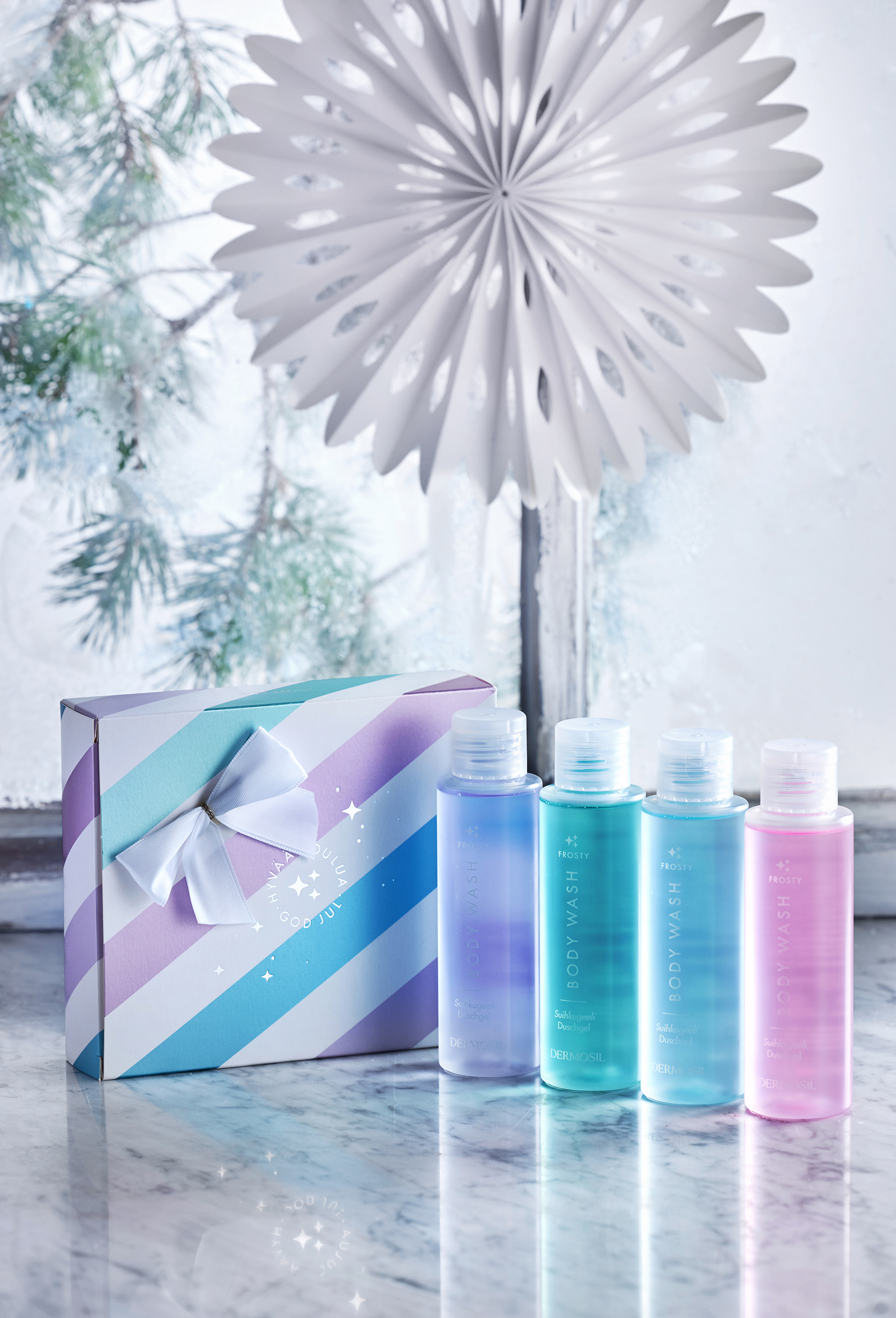 Julförpackningen Frosty innehåller fyra fantastiska duschgeler som tillverkats i vår egen fabrik i Korsnäs. Duschgelerna kommer förpackade i små pastellfärgade flaskor täckta med rimfrost, vilket för tankarna till en krispig vinterdag.