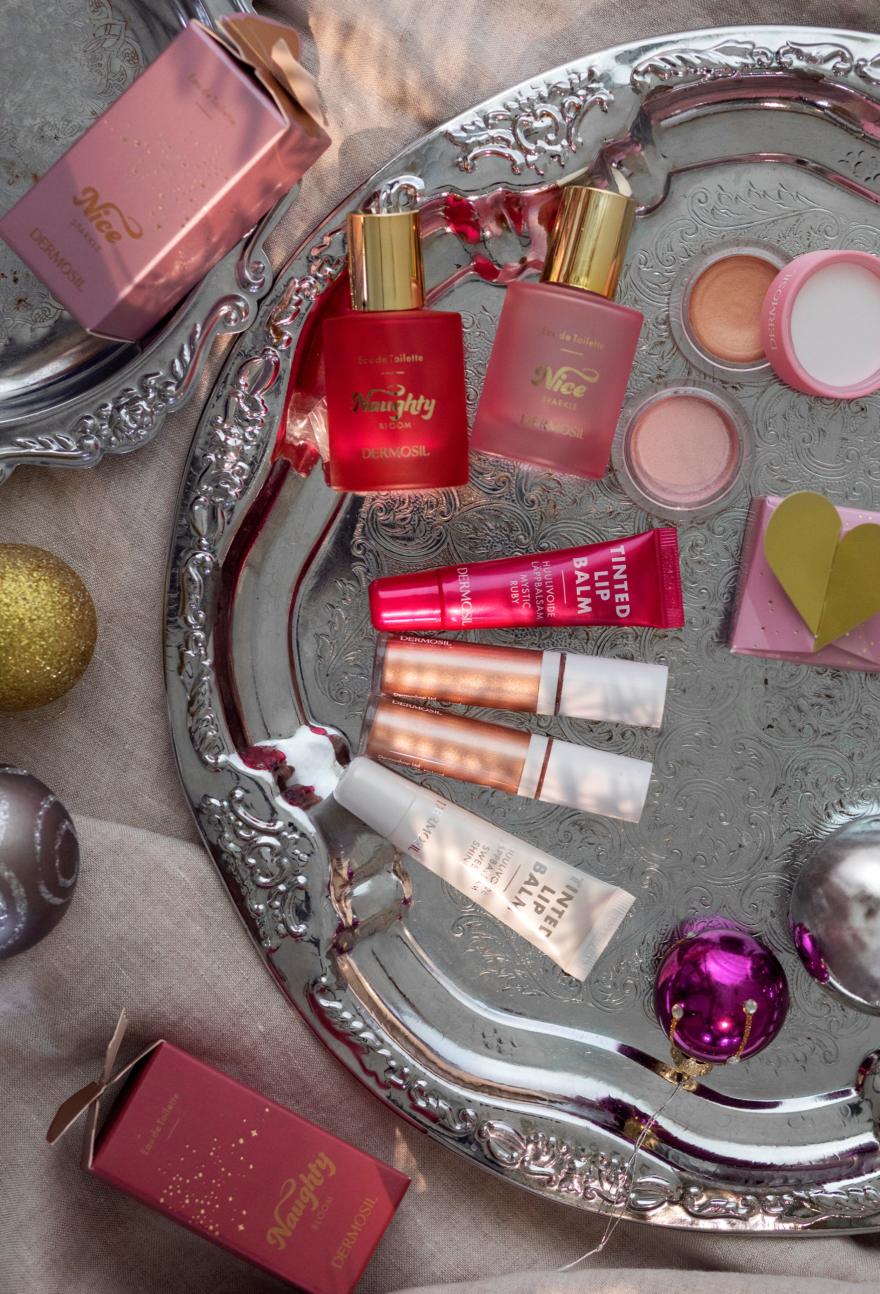 Framhäv din naturliga skönhet och skapa festlig glöd med kvalitetsmakeup och förtjusande dofter – en gåva som sprider glädje och självförtroende.