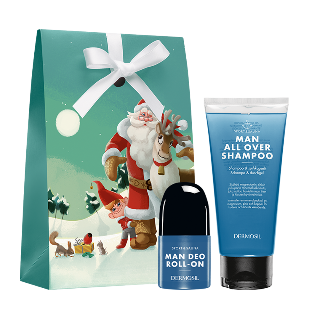 Julgåva Sport & Sauna för män innehåller våra populära, fräscha och sportiga produkter för männen: Sport & Sauna Schampo & Duschgel samt Sport & Sauna Deo Roll-On!