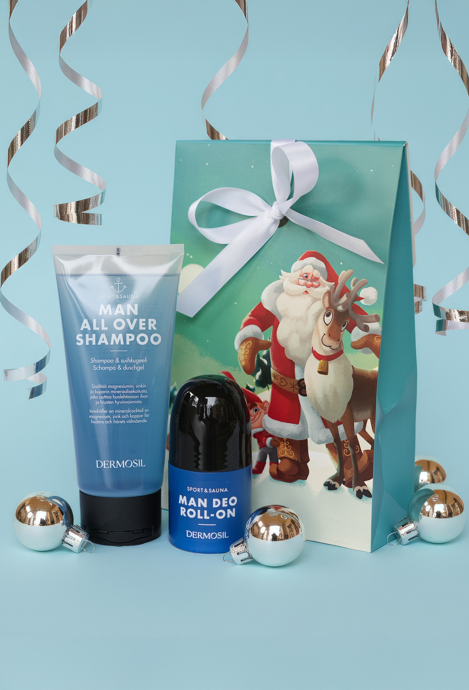 - Schampo & duschgel samt deo roll-on med manlig, sportig doft