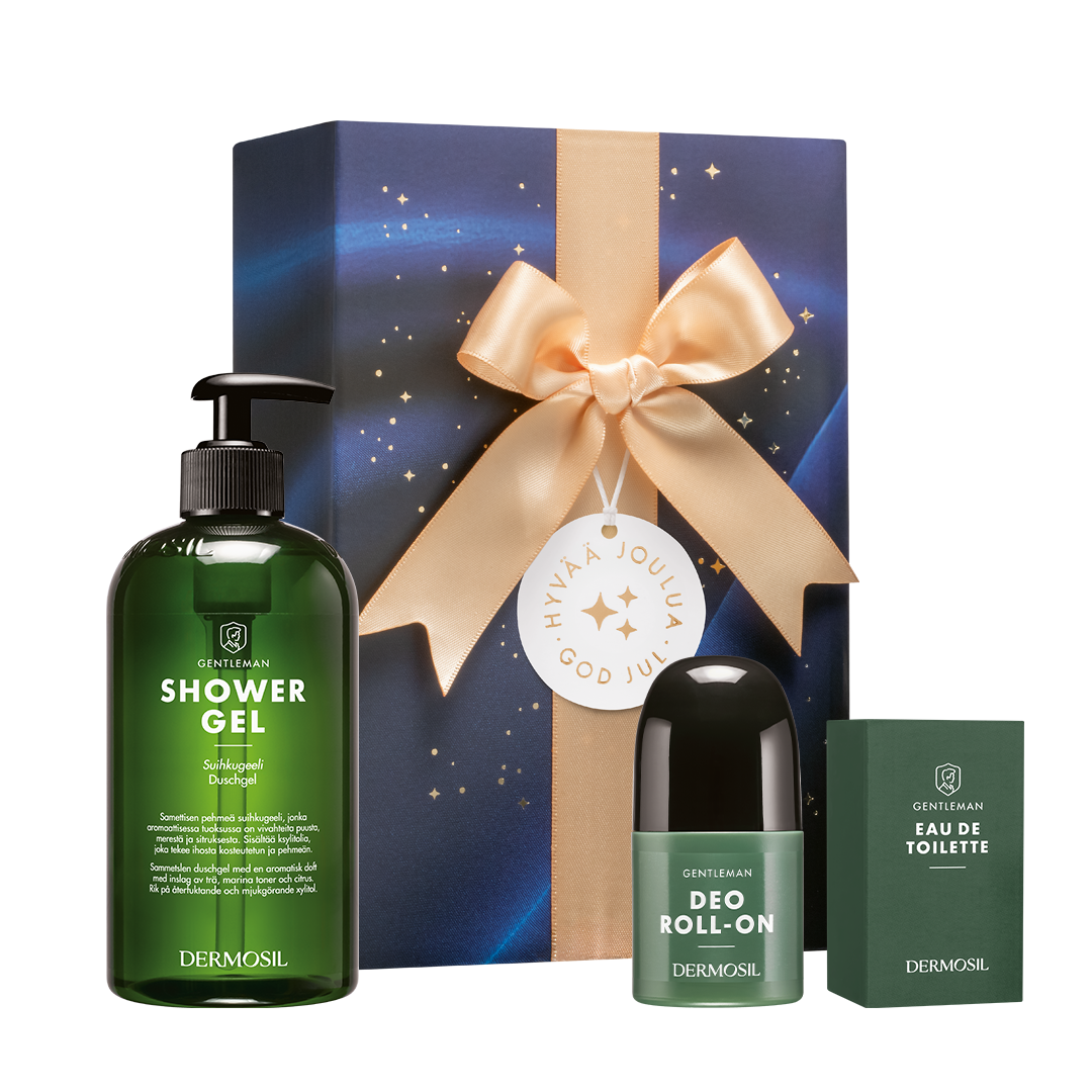 Julgåva Gentleman är den perfekta gåvan till alla män. Produkterna – Gentleman duschgel, Deo Roll-on och Eau de Toilette – har en aromatisk doft där skog och hav möts.