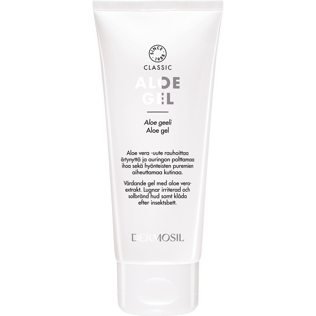 Dermosil Aloe gel ger första hjälpen åt hud som fått för mycket sol. Produkten är även perfekt för att ge lindring efter myggbett och andra insektsbett eller om huden annars är irriterad. Ta med en tub på resan, till stranden och till sommarstugan!