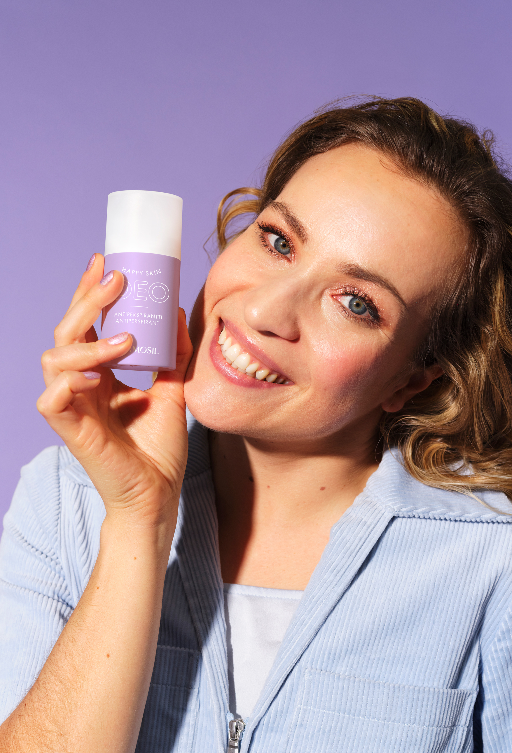 Vem vill inte känna sig fräsch i alla lägen? Happy Skin Antiperspirant ser till att hålla svetten borta och armhålorna fräscha. Produkten har en frisk doft av vattenmelon och röda bär.