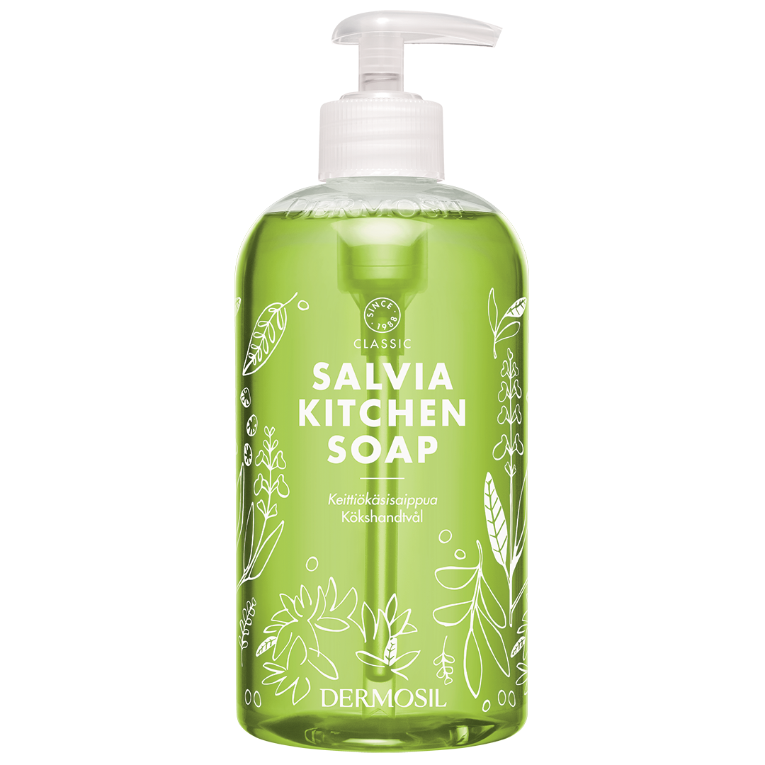 Kökshandtvålen är speciellt utvecklad för köksbruk. Salvia Kökshandtvål baserar sig på vår populära Dermosil Classic Kökstvål, men Salvia presenterar en lite annorlunda och örtig doft. Den antibakteriella tvålen passar perfekt i köket eftersom den inte löddrar för mycket och är därmed mycket lätt att skölja bort.