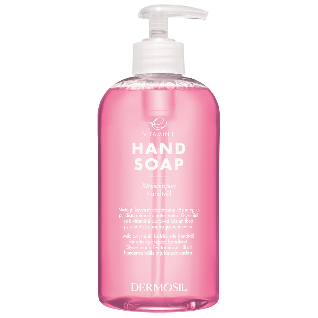 Återfuktande handtvål med E-vitamin. Rengör skonsamt och skyddar huden mot torrhet. Fräsch doft, dermatologiskt testad.