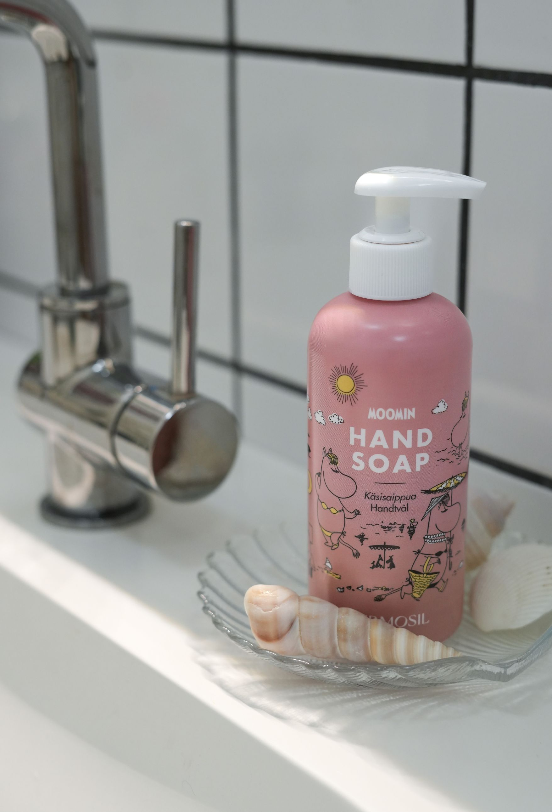 Mumin handtvål sprider en drömsk sommarkänsla och rengör händerna skonsamt utan att torka ut huden. Handtvålen innehåller mandelolja som mjukgör och lugnar samt glycerin som återfuktar. Havreextrakt mjukgör och slätar ut huden.