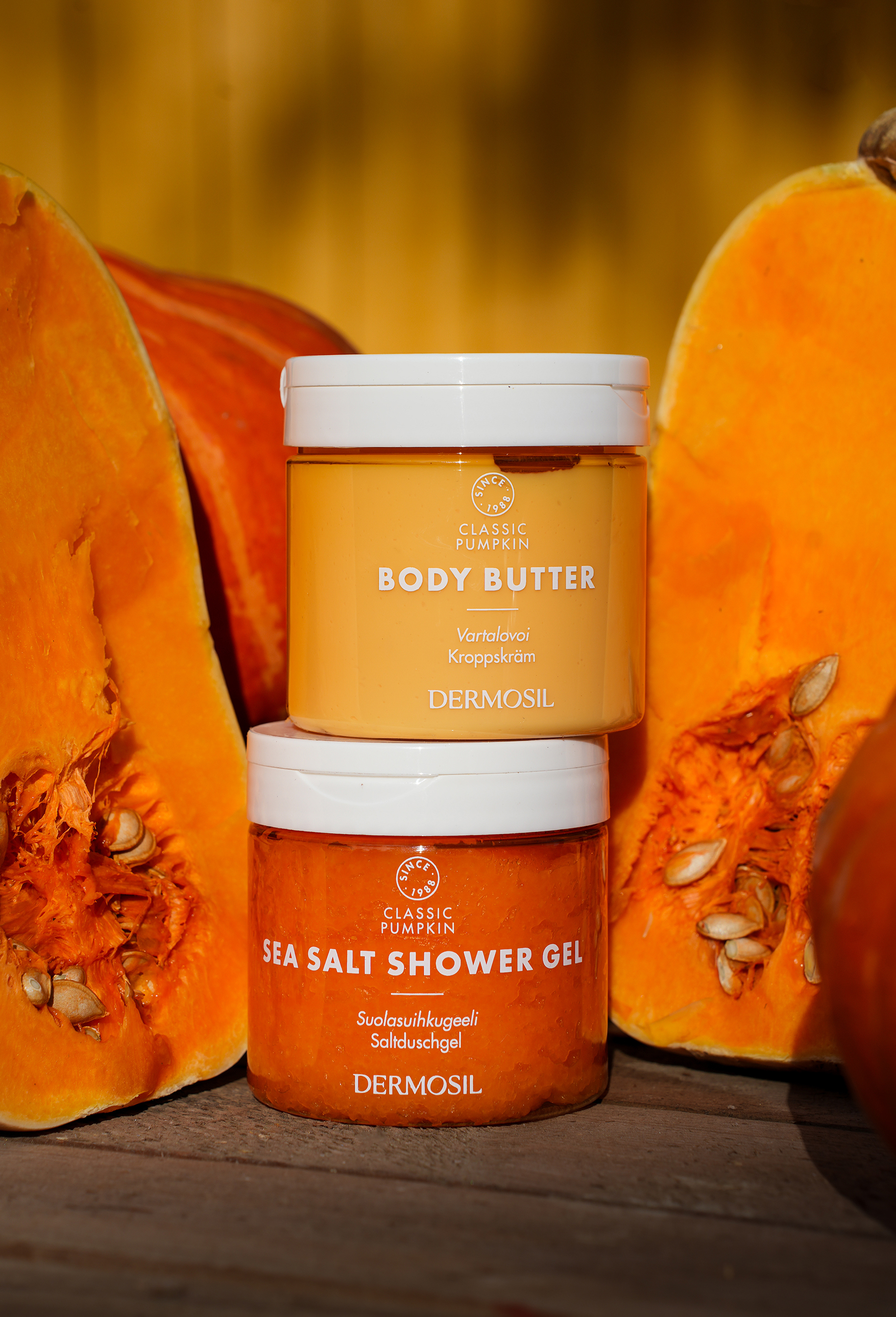 Efter rengöring är huden som mest mottaglig för fukt. Pumpkin Kroppskräm är en fukt- och näringsgivande hudkräm. Den fylliga kroppskrämen innehåller sheasmör, glycerin, pumpaextrakt och cica-extrakt, vilka är antioxidantiska, fuktgivande ingredienser som också hjälper till att minska tecken på åldrande i huden. Ingredienserna har också lugnande egenskaper Kroppskrämen innehåller dessutom pumpaextrakt. Duschgelen och kroppskrämen kompletterar varandra och stöder hudens välmående.