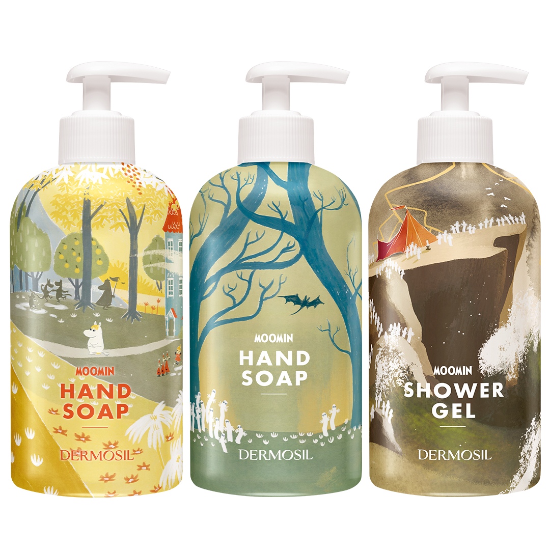 Tre underbart höstiga Mumin-tvålar som tvättar huden mjukt, samtidigt som de vårdar och tar hand om huden.