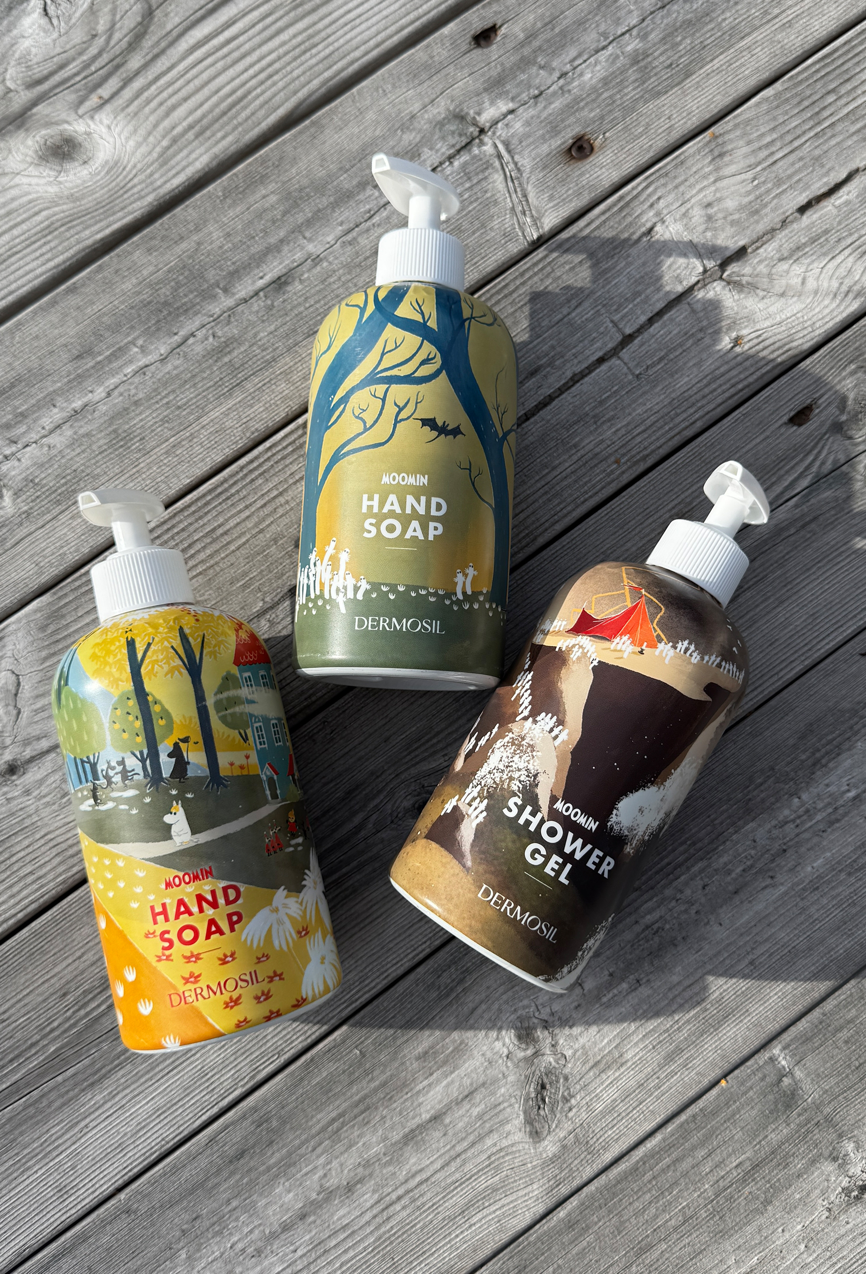 Tre Mumin-tvålar som andas höstig stämning vårdar huden