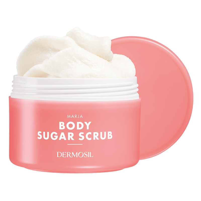 Exfoliera din hud mjuk med denna förtrollande sockerskrubb för kroppen! Den fylliga och återfuktande skrubbkrämen innehåller socker som skonsamt exfolierar huden och avlägsnar döda hudceller. Produkten har den välbekanta och förtjusande hallondoften som är bekant från Marja-seriens hallonprodukter.