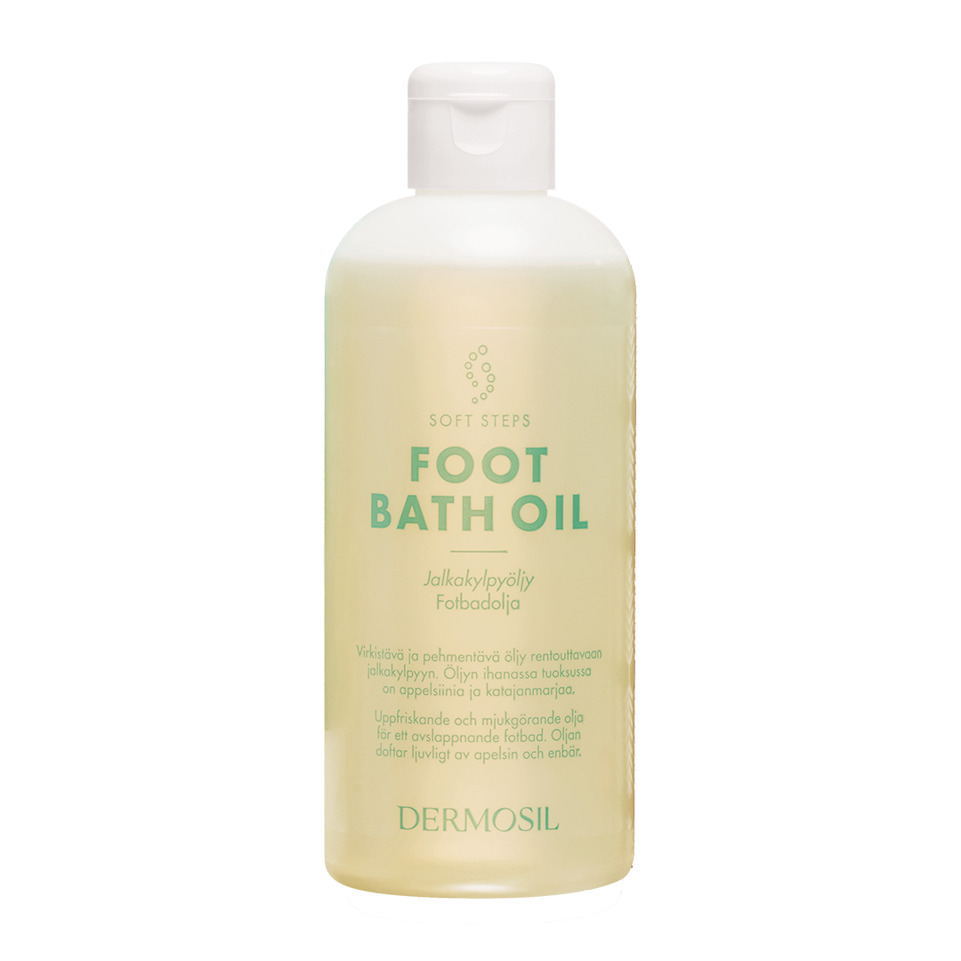Fotbadolja med en fräsch doft av apelsin och kryddiga enbär ger trötta fötter en avslappnande stund samtidigt som den effektivt mjukar upp och vårdar huden.