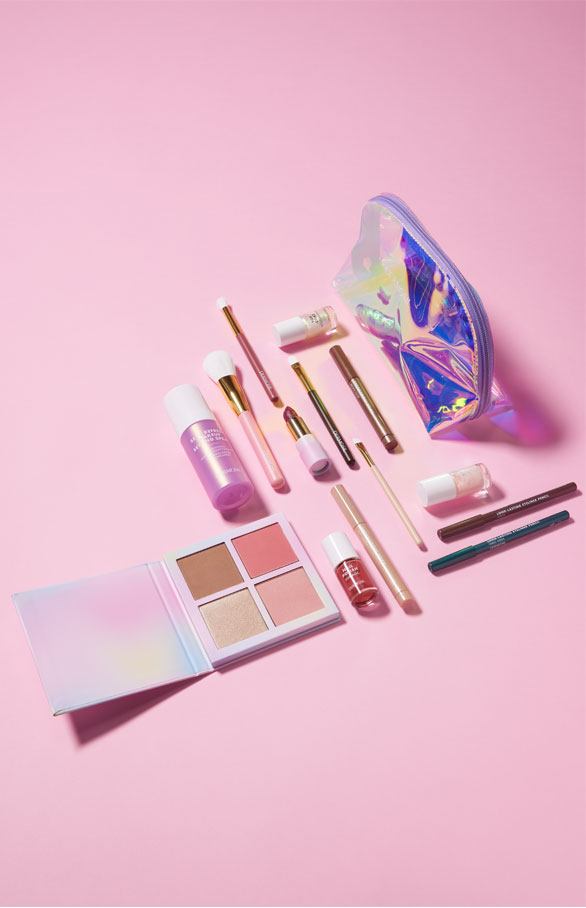Pink: Mica, Tapioca Starch, Kaolin, Helianthus Annuus Hybrid Oil, CI 77742, Ricinus Communis Seed Oil, Macadamia Integrifolia Seed Oil, CI 7789, P-Anisic Acid, CI 15850, CI 7749, Aluminum Hydroxide, Magnolia Officinalis Bark Extract, CI 77492, CI 77007. Peachy: Talc, Mica, Magnesium Stearate, Caprylic/Capric Triglyceride, CI 77891, Macadamia Integrifolia/Tetraphylla Seed Oil, Kaolin, Ricinus Communis Seed Oil, CI 77491, CI 75470, CI 77492, P-Anisic Acid, Maltodextrin, Tocopherol, Glyceryl Caprylate, Helianthus Annuus Seed Oil. Bronze: Mica, Kaolin, Magnesium Stearate, Caprylic/Capric Triglyceride, CI 77492, Copernicia Cerifera Cera, CI 77499, CI 77491, Isocetyl Stearoyl Stearate, Pentylene Glycol, Glyceryl Caprylate, CI 77742, Magnolia Officinalis Bark Extract, Magnesium Oxide, Alumina. Glow: Mica, CI 77891, Zea Mays Starch, Triethylhexanoin, Octyldodecyl Stearoyl Stearate, Silica, Dimethicone, Copernicia Cerifera Cera, CI 77491, Polyvinyl Alcohol, Phenoxyethanol, Caprylyl Glycol, Glycerin, Tin Oxide, CI 77492, Hexylene Glycol, CI 77499, Alumina, Magnesium Oxide.