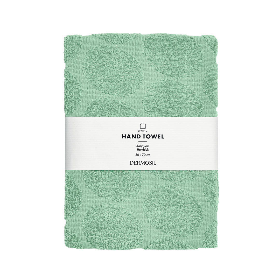 Vacker, grön handduk i 100 % bomull som känns behagligt mjuk mot huden. Denna högkvalitativa handduk ger en vacker touch till ditt badrum och torkar händerna effektivt.