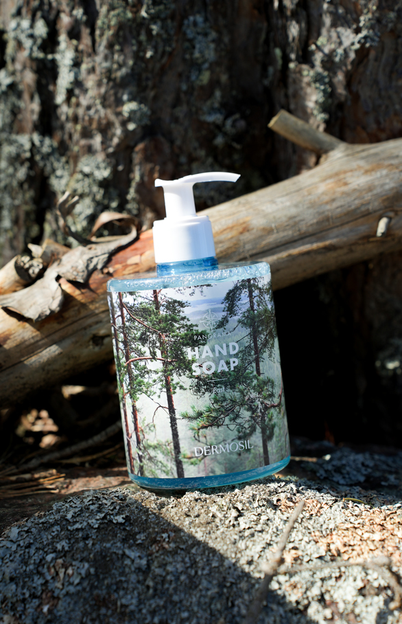 Vi har tappat en bit på flaska av det vackraste som Östra Finland kan erbjuda. Panorama East handtvålen pryds av en härlig skogsvy från Neitvuori i Södra Savolax. Tvålen tvättar skonsamt händerna rena och förtjusar med sin pigga och fruktiga doft. Doften bär nyanser av nordiska bär såsom hjortron, hallon samt svarta och röda vinbär.