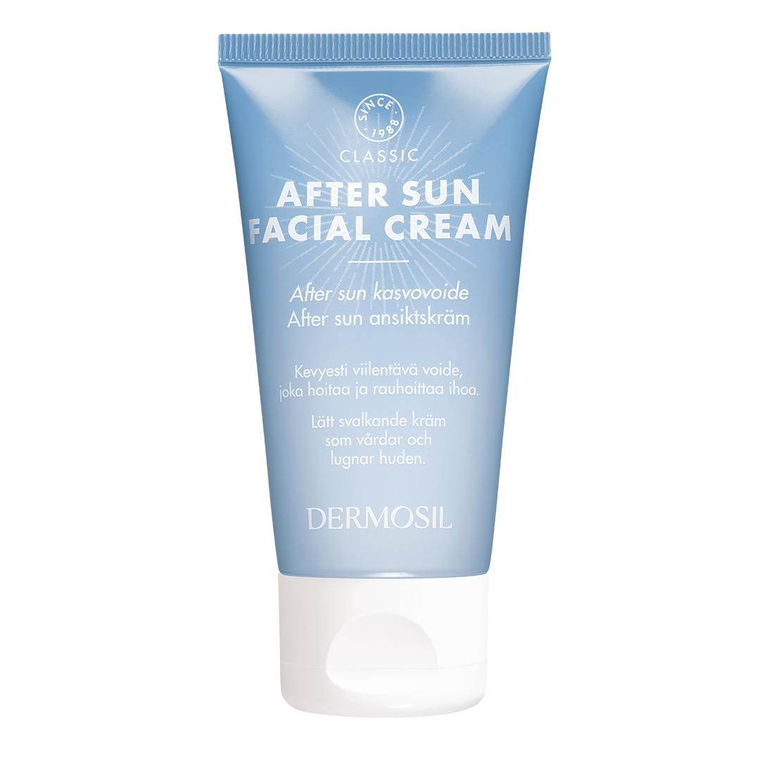 Uppfriskande ansiktskräm som lugnar och vårdar huden efter en dag i solen. Denna lätta After Sun-kräm kan också användas som en vanlig ansiktskräm. Krämen har en frisk och sval doft.