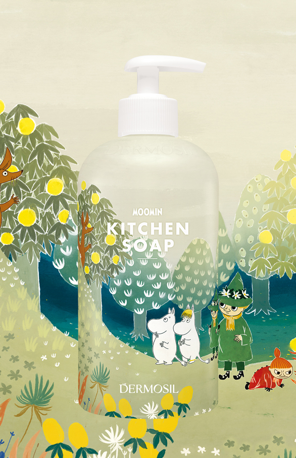 Mumin Kökshandtvål Trädgård förtjusar med sin fräscha doft av apelsin och citron samt med sin vackra illustration! Kökshandtvålen rengör dina händer under matlagningen. God handhygien är särskilt viktigt när man hanterar olika livsmedel samtidigt.