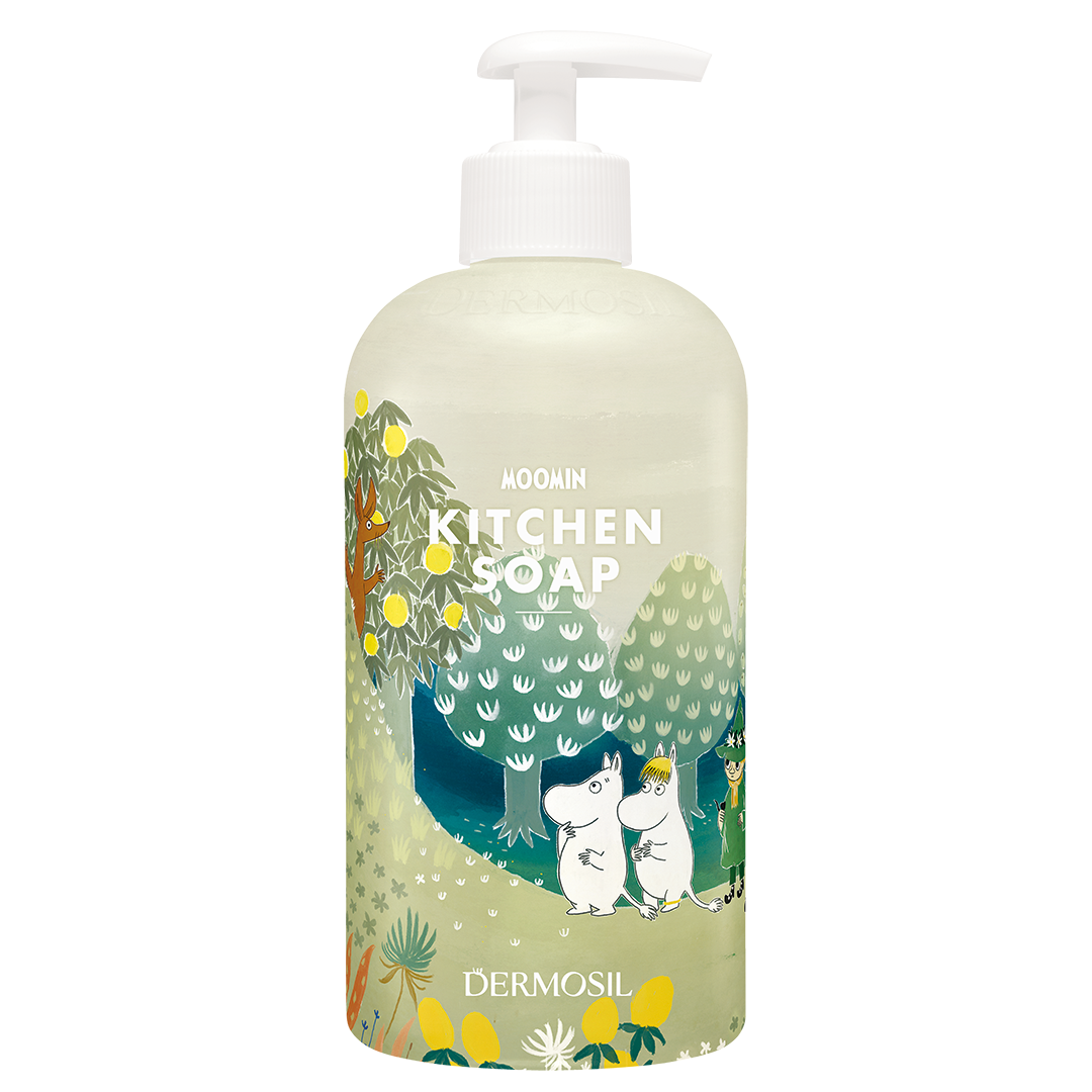 Håll händerna rena och fräscha under matlagningen med vår fantastiska Mumin Kökshandtvål Trädgård! Tvålens citrusdoft neutraliserar effektivt lukt från händerna.