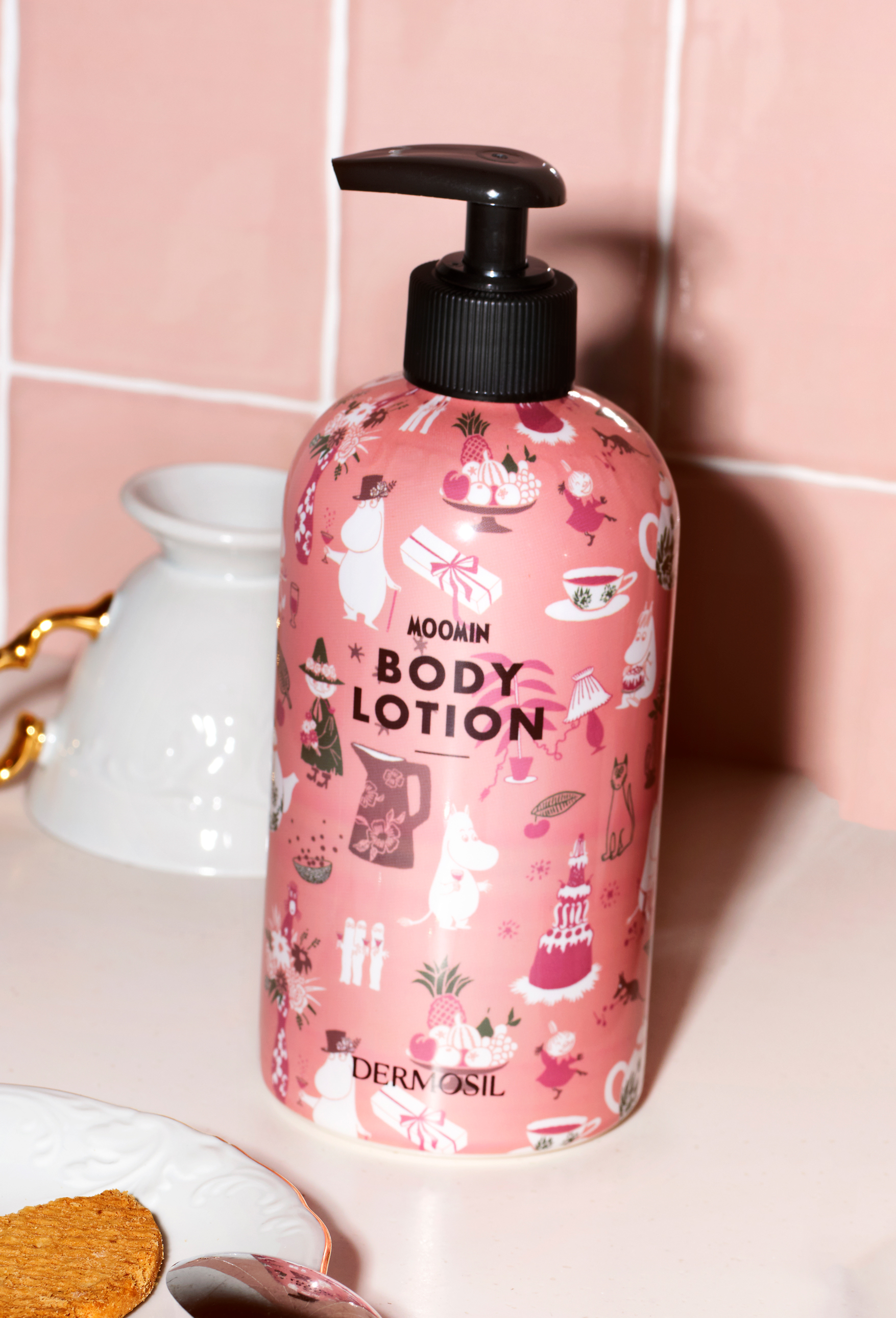 Kom i feststämning tillsammans med Mumindalens invånare! Mumin Hudvårdslotion Feststämning är en näringsgivande kräm för kroppen och innehåller lyxigt sheasmör, lugnande karbamid och fuktgivande glycerin.