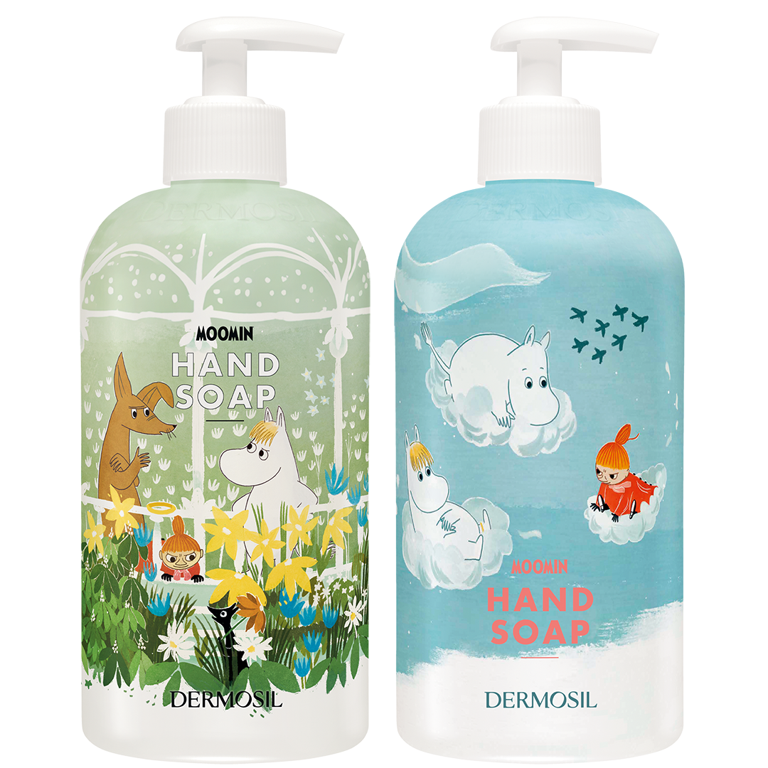 Köp två söta handtvålar med Muminmotiv till setpris! Dessa tvålar rengör händerna skonsamt utan att torka ut dem. Produkterna är tillverkade i vår fabrik i Korsnäs.