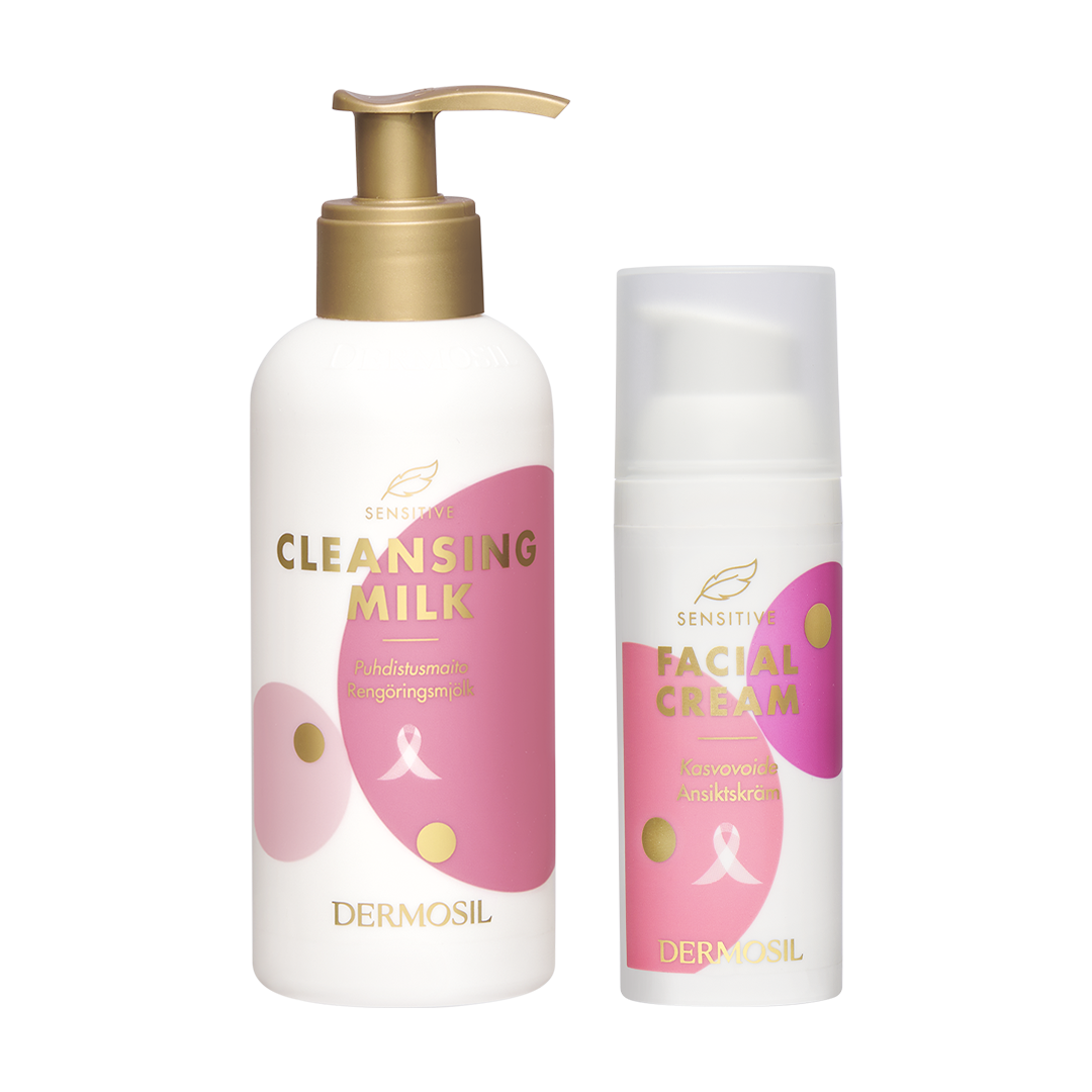 Ett milt och skonsamt set för rengöring och vård av känslig hud