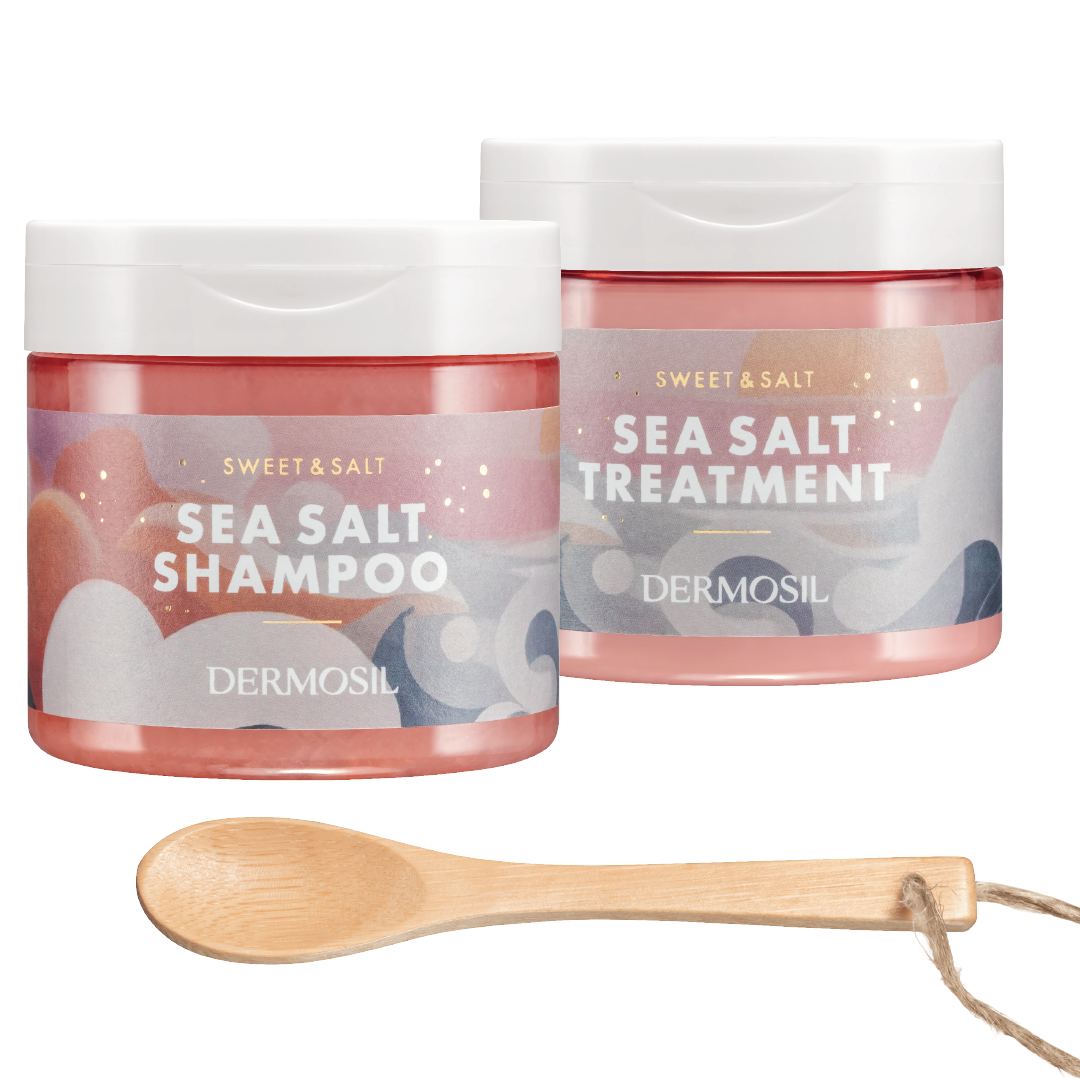 Sweet & Salt Saltschampo och Sweet & Salt Saltbalsam är en riktig powerduo för djuprengöring och intensiv vård. För bästa resultat, använd tillsammans en gång i veckan. Dosera med den medföljande bambuskeden.
