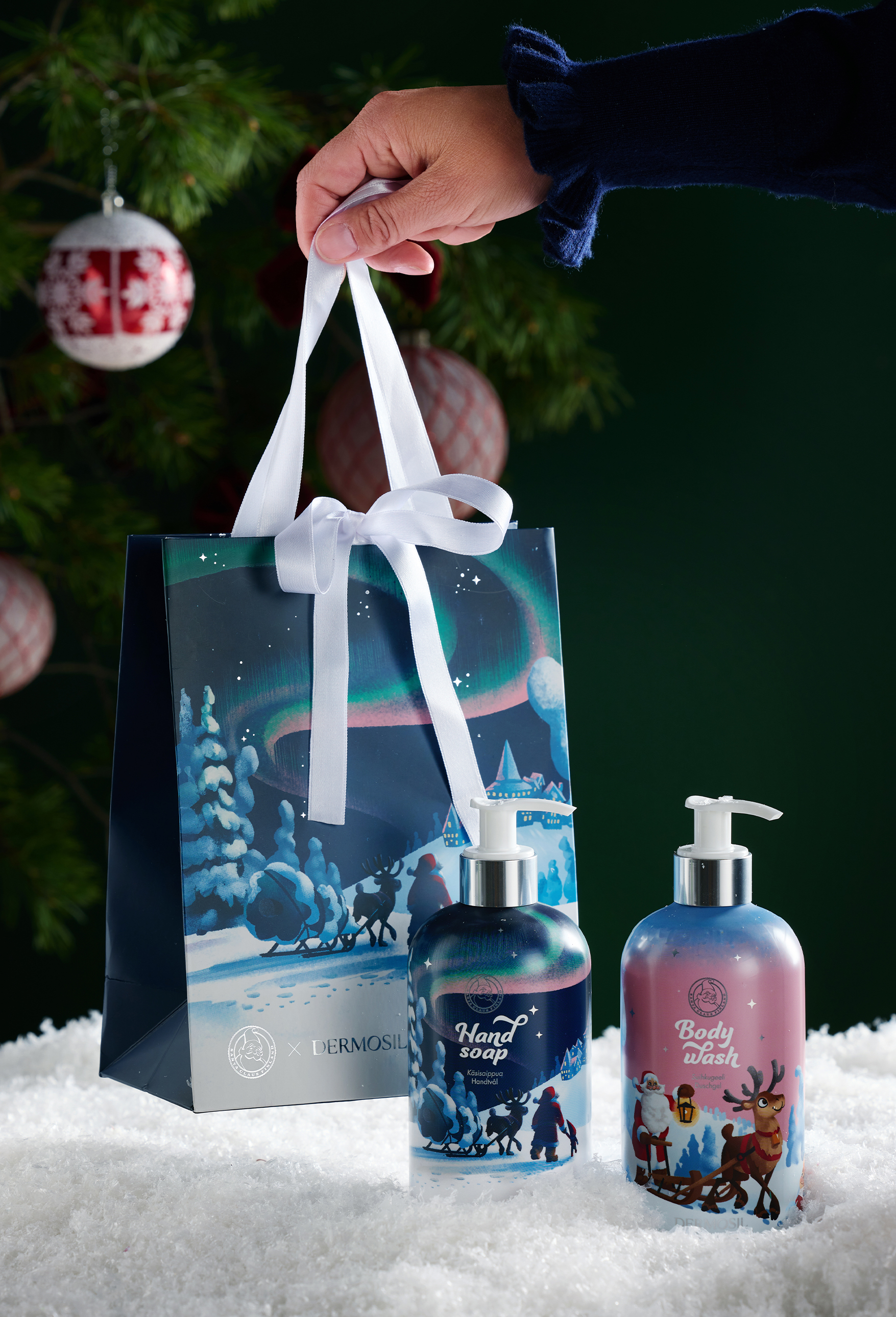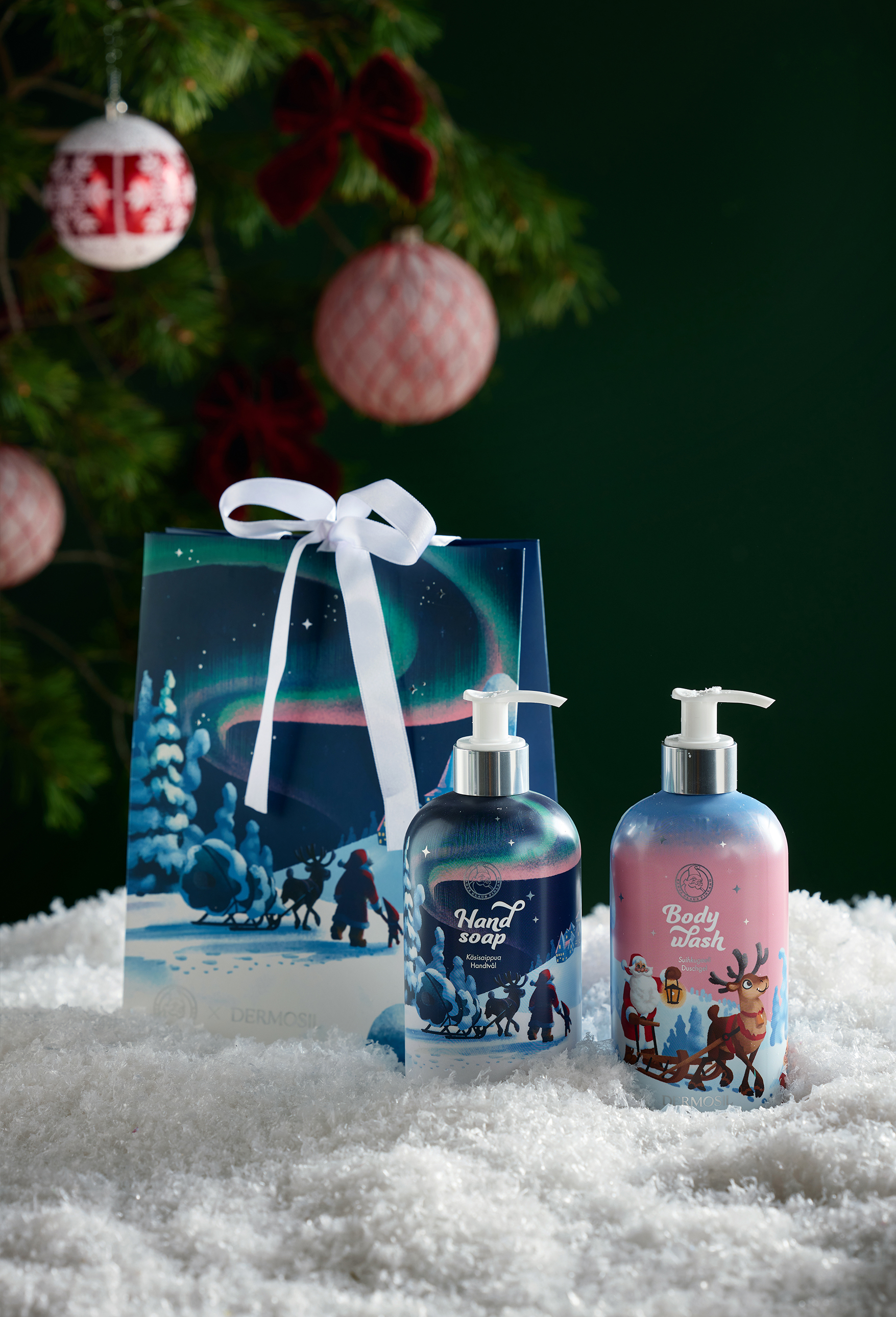 Jultomtens tvålduo innehåller Jultomtens officiella jultvålar till ett förmånligt setpris! Jultomtens Handtvål och Jultomtens Duschtvål har testats i Korvatunturis krävande förhållanden och bedömts vara extra snälla mot huden.
