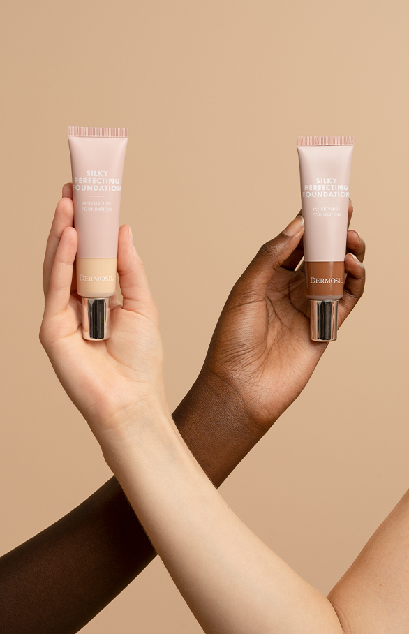 Silky Perfecting foundation har en fjäderlätt sammansättning som smälter perfekt samman med hyn och ger ansiktet vacker och naturlig lyster. Krämen täcker effektivt hudens små skavanker och ojämnheter, vilket gör hyn felfri och sammetsmjuk.
