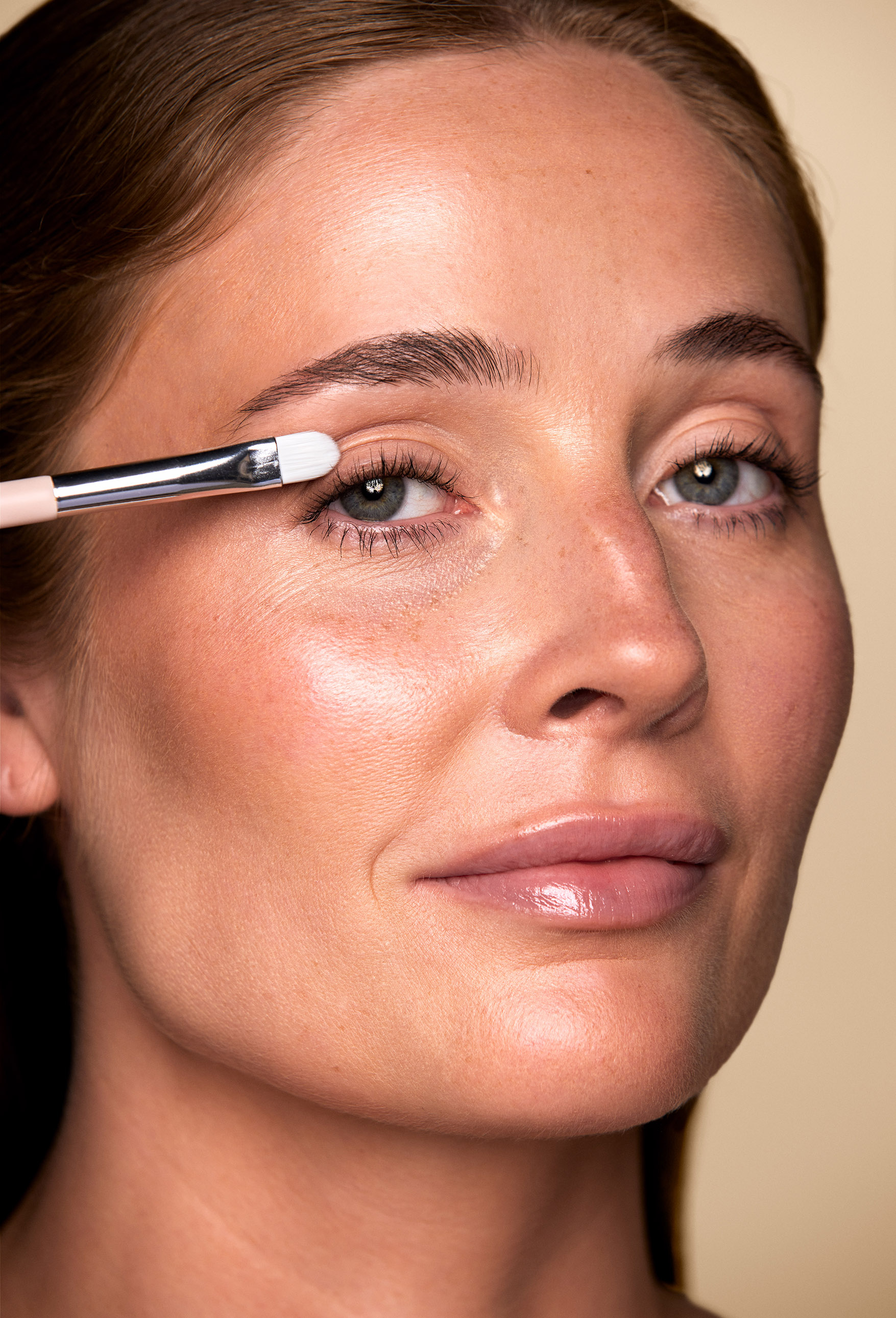 Liten och lagom fast ögonskuggsborste för smidig och noggrann applicering av ögonskugga, exempelvis i ögonvrån, intill kajalen och vid undre fransraden.