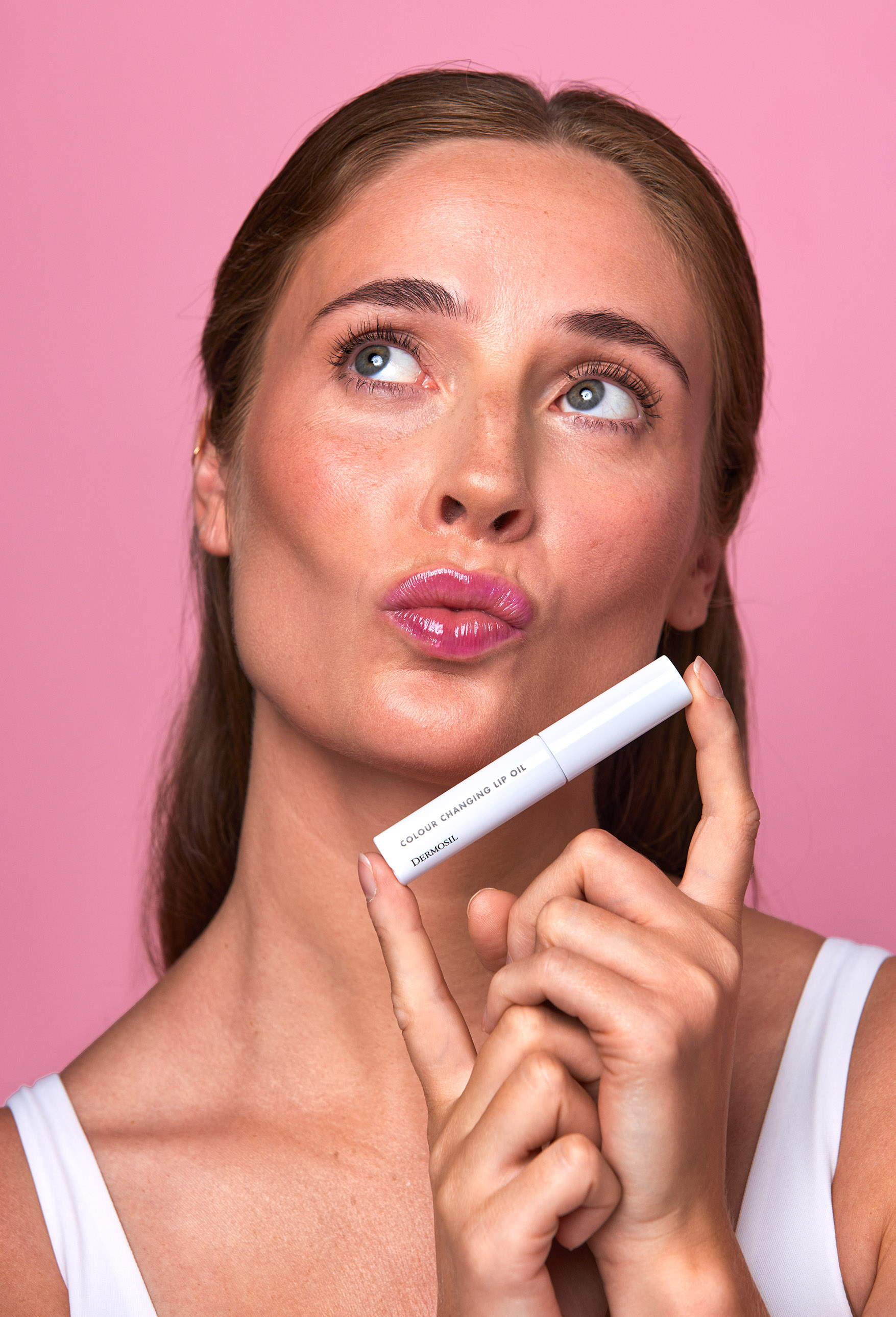 Transparent läppolja som byter nyans enligt läpparnas pH-värde och ger läpparna en vacker rosa nyans. Den individuella nyansen varierar från rosa till mörkare röd beroende på läpparnas eget pH-värde.