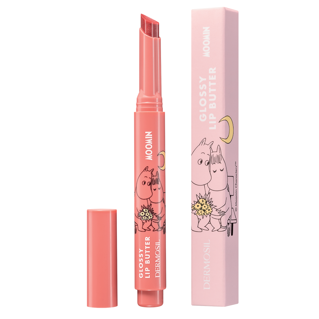 Mumin Färgad läppbalm har en aningen skimrande rosa nyans som skiftar lätt i orange. Den krämiga läppbalmen ger läpparna en fyllig, glansig look och känns behaglig tack vare sina fuktgivande och mjukgörande ingredienser i form av ricinolja, sheasmör och solrosolja.